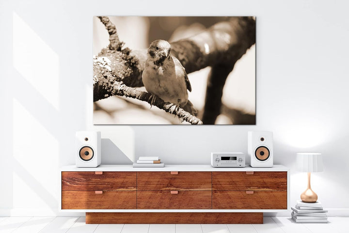 deyoli neugieriger Vogel Format: 80x60 Effekt: Sepia als Leinwandbild, Motiv fertig gerahmt auf Echt