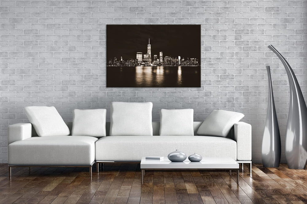 deyoli New York Manhatten bei Nacht Format: 80x60 Effekt: Sepia als Leinwandbild, Motiv fertig gerah
