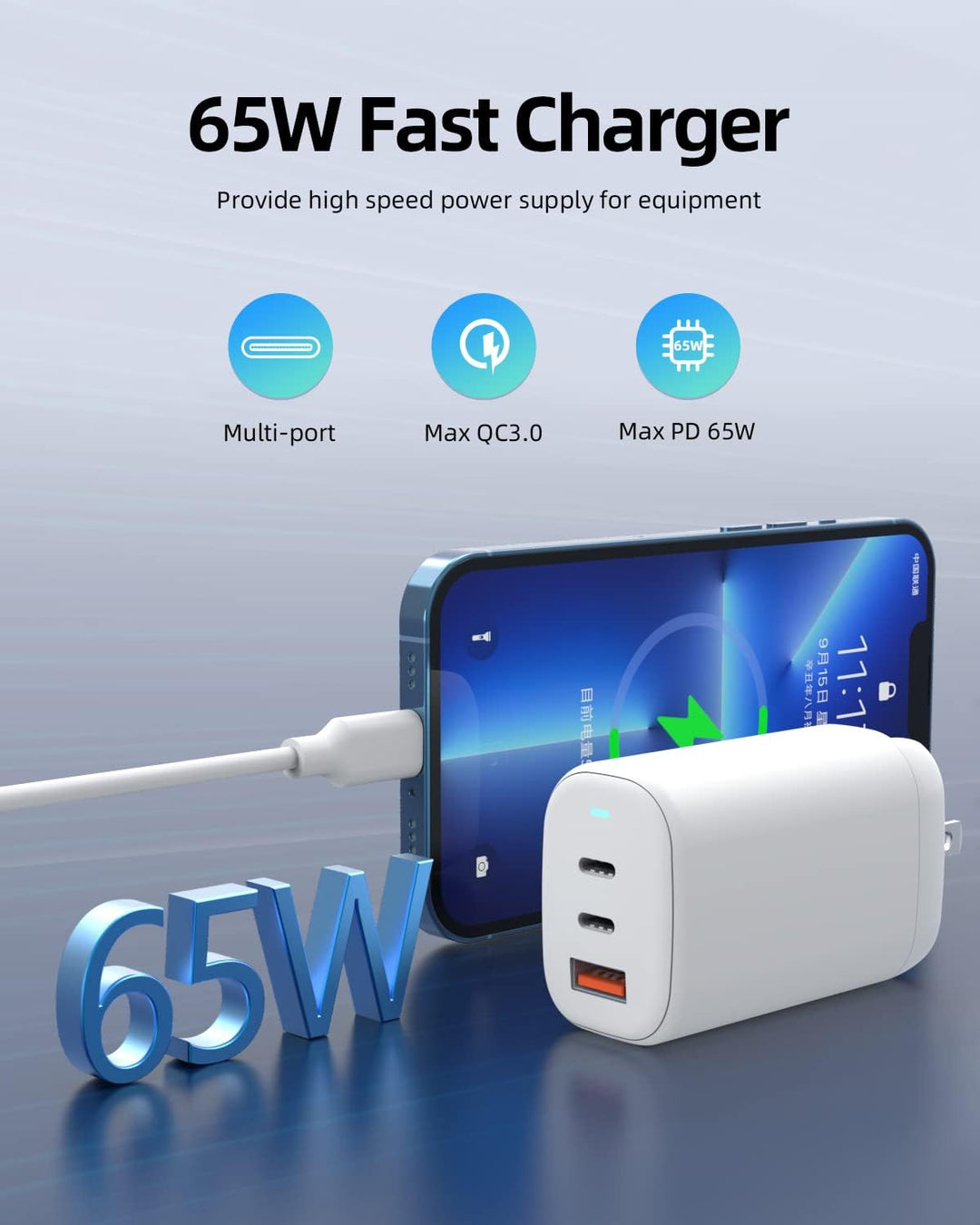 - Ausgang & Wattleistung: USB-A Max 30W, USB-C1 Max 65W, USB-C2 Max 65W (Funktioniert mit 15V-3A 45W 30W 20W 18W).