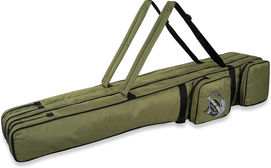 - Gut gepolsterter Rückentragegurte und stabile Doppelreissverschlüsse mit gummierten nfs Zippern und integrierte Rutenbänder mit Klettverschluss schützen Ihre Ruten bei Transport und Aufbewahrung - Zusätzlicher mit der länglichen Aussentasche für