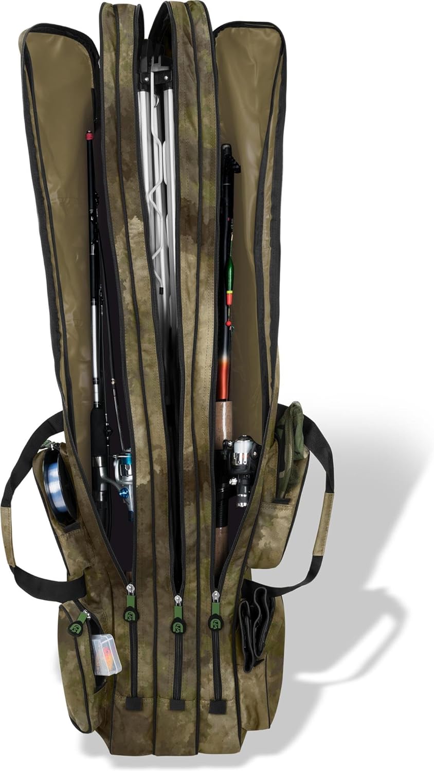 - Gut gepolsterter Rückentragegurte und stabile Doppelreissverschlüsse mit gummierten nfs Zippern und integrierte Rutenbänder mit Klettverschluss schützen Ihre Ruten bei Transport und Aufbewahrung - Zusätzlicher mit der länglichen Aussentasche für