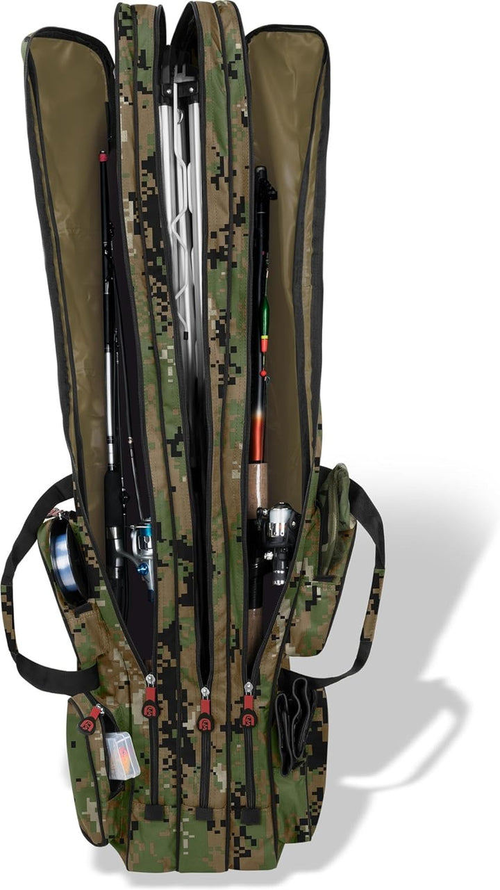 - Gut gepolsterter Rückentragegurte und stabile Doppelreissverschlüsse mit gummierten nfs Zippern und integrierte Rutenbänder mit Klettverschluss schützen Ihre Ruten bei Transport und Aufbewahrung - Zusätzlicher mit der länglichen Aussentasche für