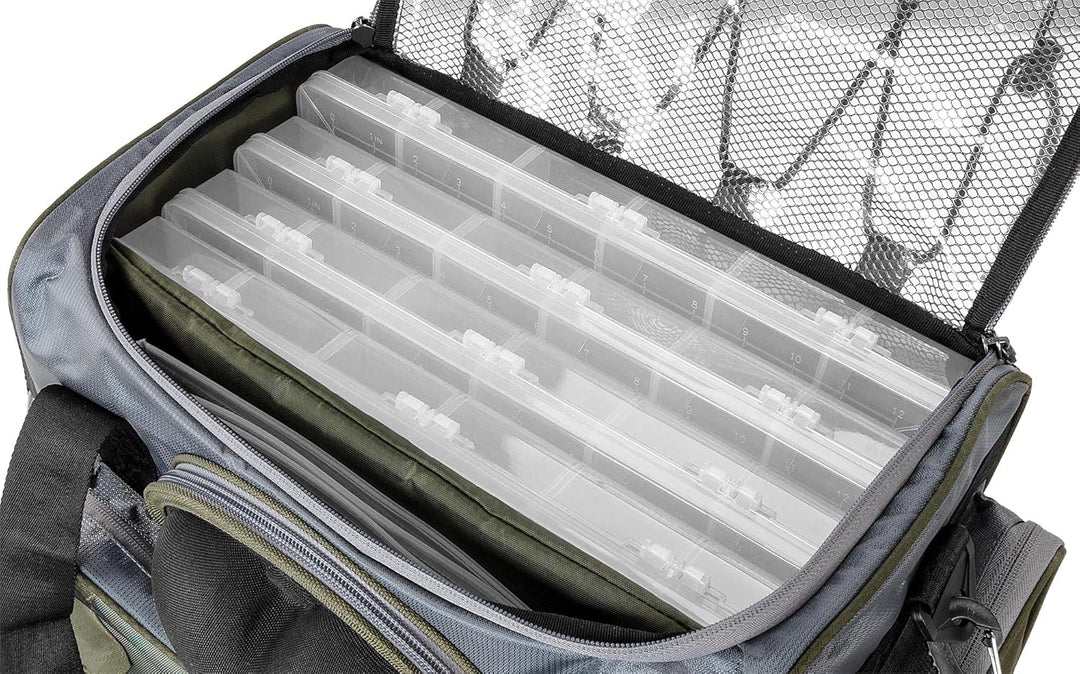 - Wasserdichte Unterseite, wasserdichter Deckel und stark wasserabweisendes Obermaterial - langlebig, wasser- und reissfest - inkl. 5 Aufbewahrungsboxen für Köder, Blinker oder Wobbler