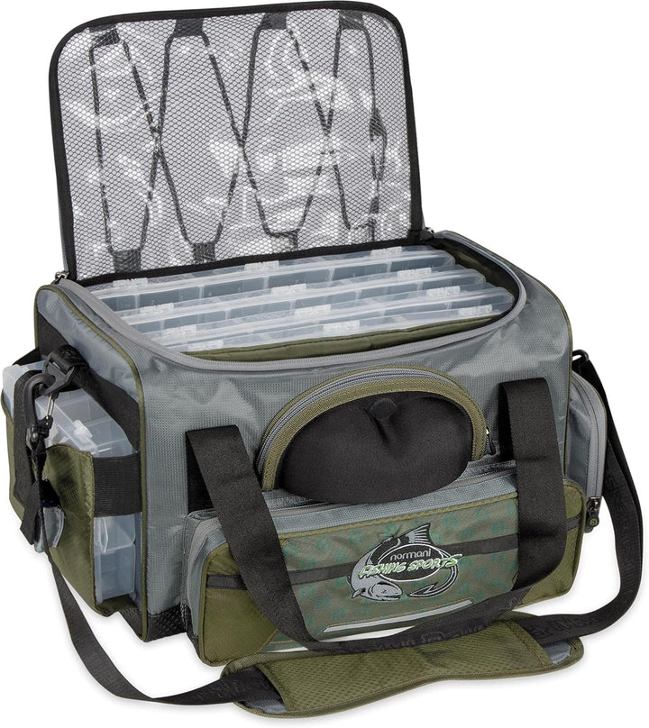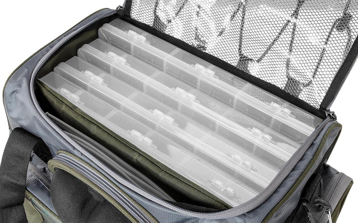 - Angeltasche inkl. 5 Köderboxen und Hardcase für Sonnenbrille - Transport per Schultergurt und Tragegriffe - Die moderne Angeltasche deckt die diversen Angelvarianten erfolgreich ab. Spinnfischen auf Meerforelle, Hecht, Zander oder Wels. Posenangeln auf