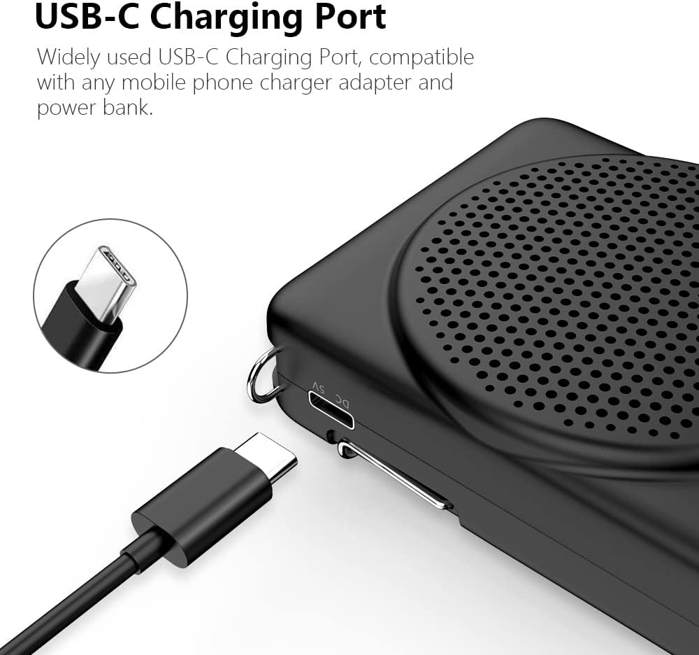- 【Verbesserter Mikrofon-Lautsprecher】Dieser tragbare Sprachverstärker kann als MP3-Audio-Player verwendet werden, kann auf Computern und Mobiltelefonen verwendet werden. Die Ladeschnittstelle nimmt fortschrittlichen Typ-C an (Ladekopf ist nicht im