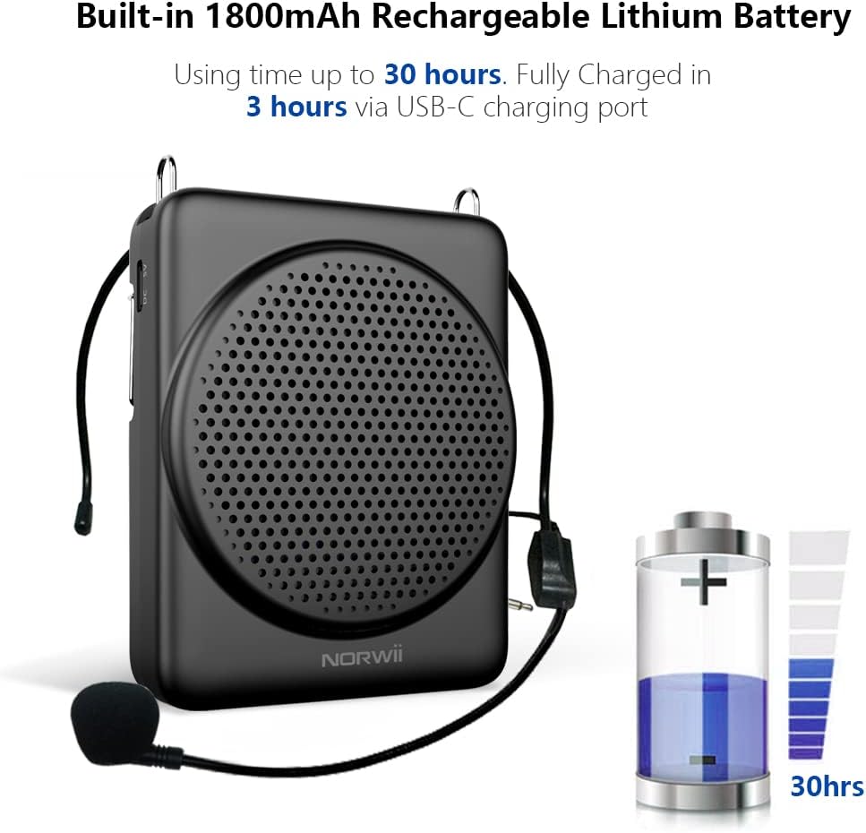 - 【Schnelles Aufladen und lange Akkulaufzeit】 Norwii Sprachverstärker ist mit hochwertigem Mikrochip ausgestattet, um ein schnelles Aufladen und eine längere Nutzungszeit zu gewährleisten. Ladezeit: 2-3 Stunden, Verstärkungszeit: bis zu 30 Stunden,