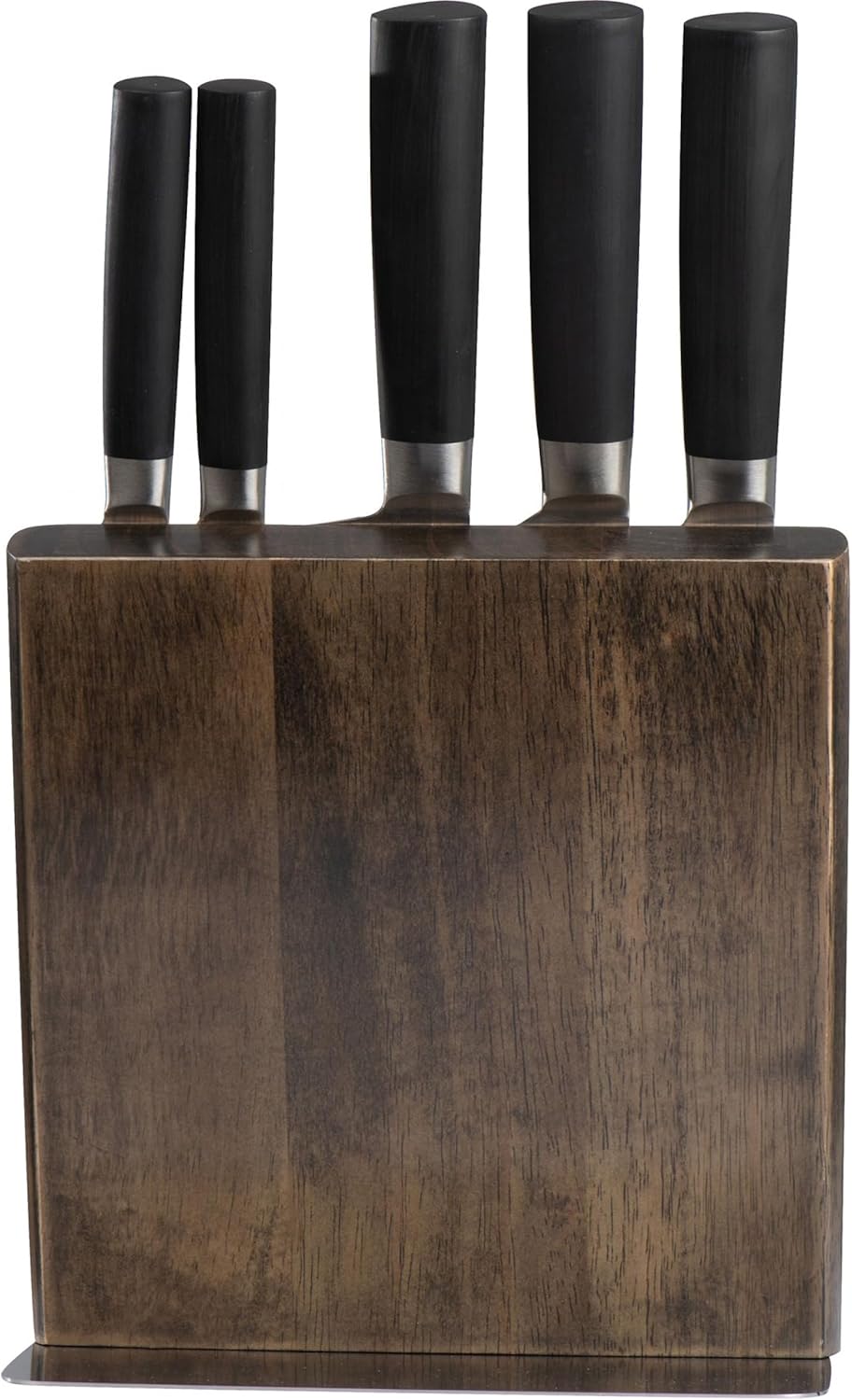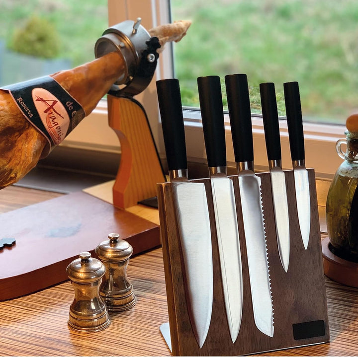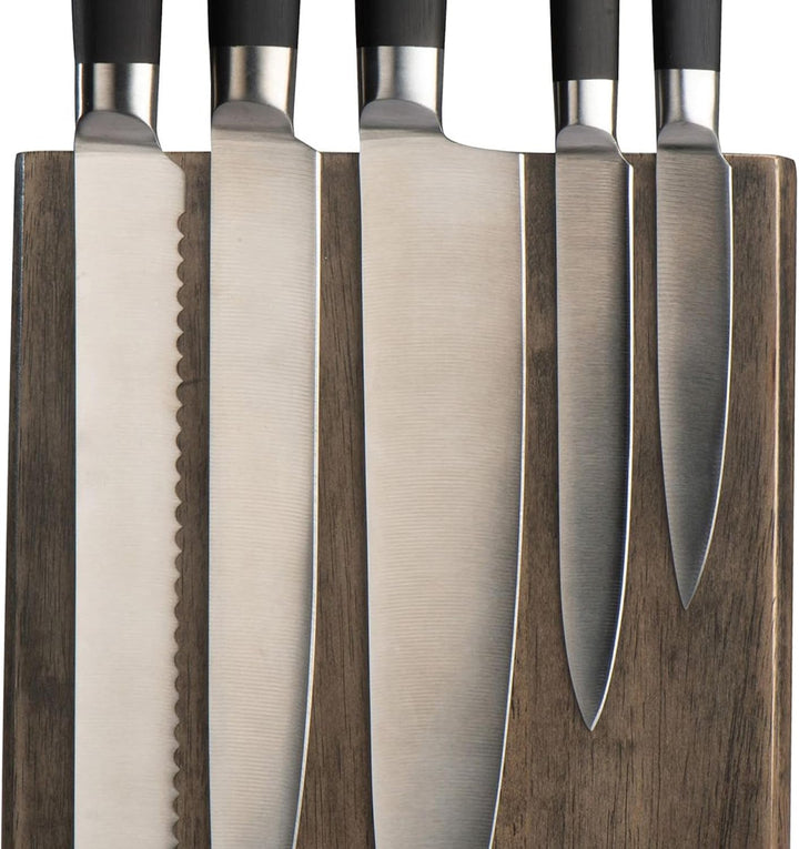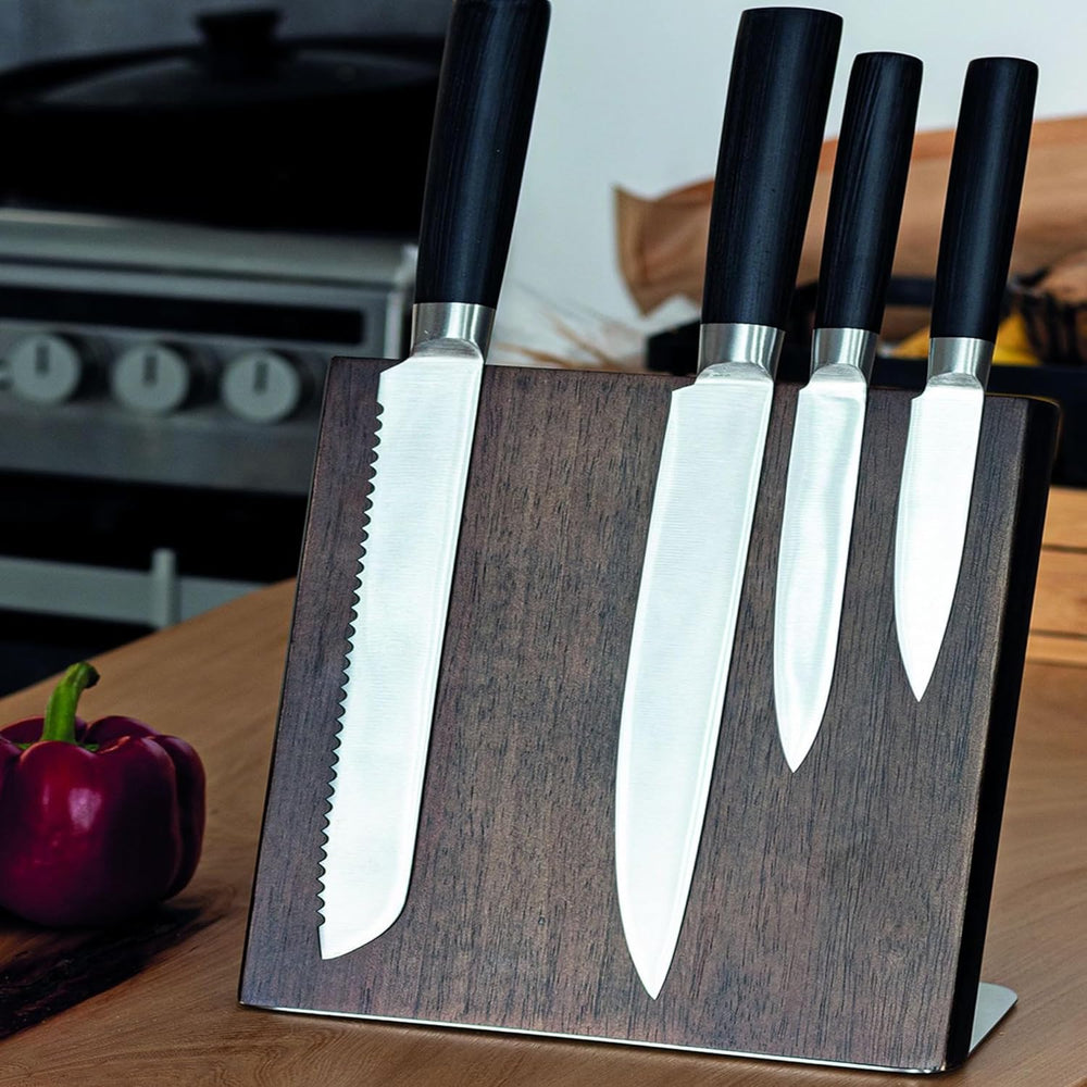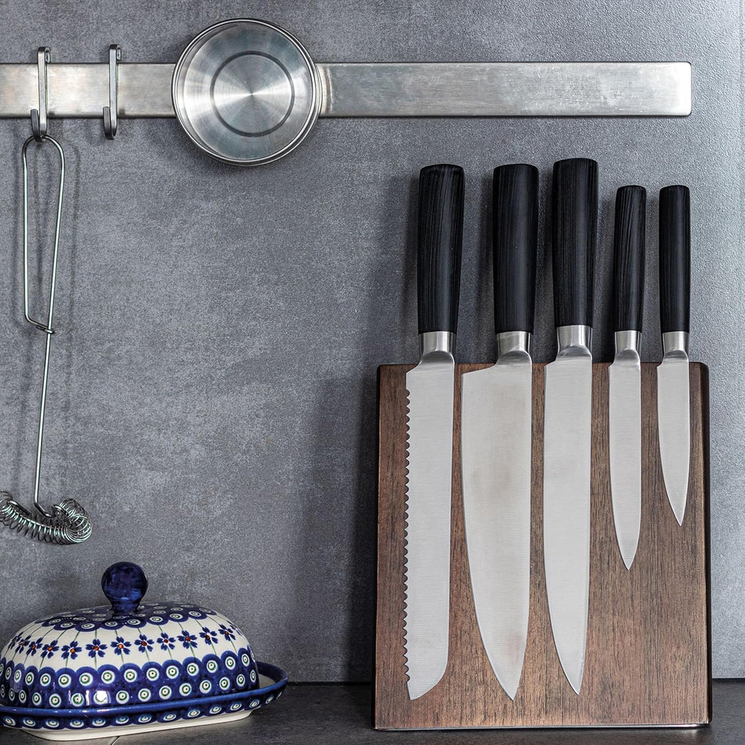 - magnetischer Holz Messerblock inkl. 5 Edelstahl Messern zum Schneiden von Brot, Fleisch, Obst, Gemüse u. a. geeignet