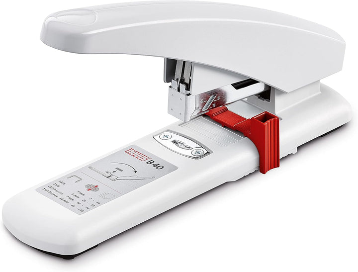 - Der Novus Blockhefter B 40, mit einer maximalen Einlegetiefe für Papier von 55mm, ist leistungsstark, zuverlässig und langlebig und deswegen für den täglichen Einsatz im Büro ideal geeignet