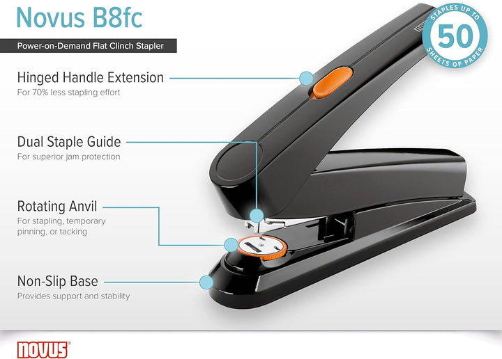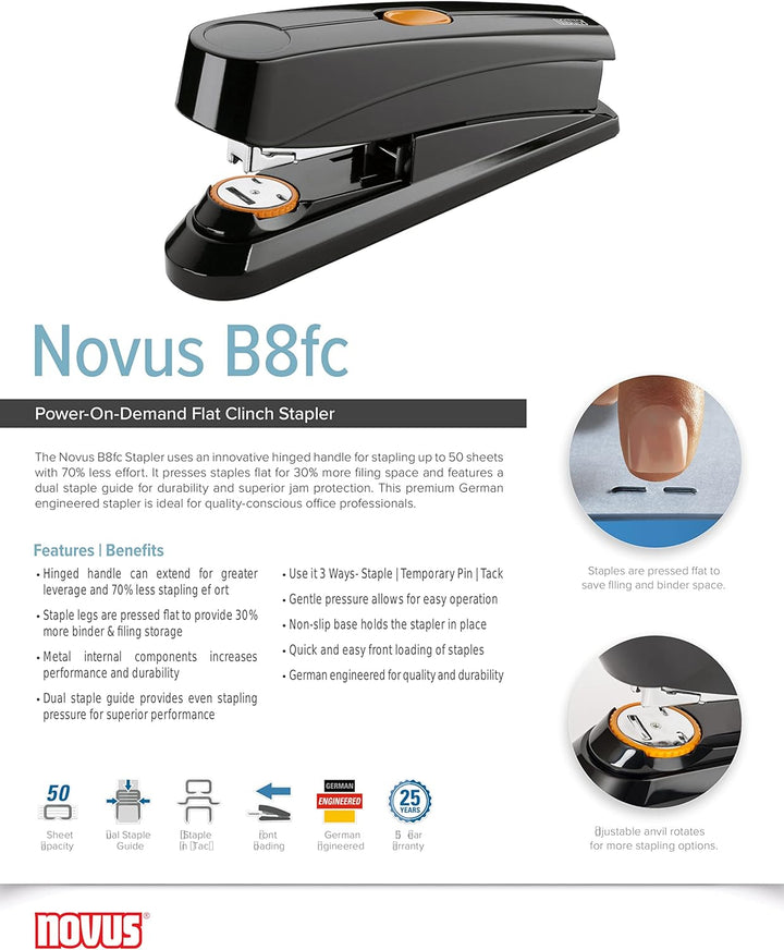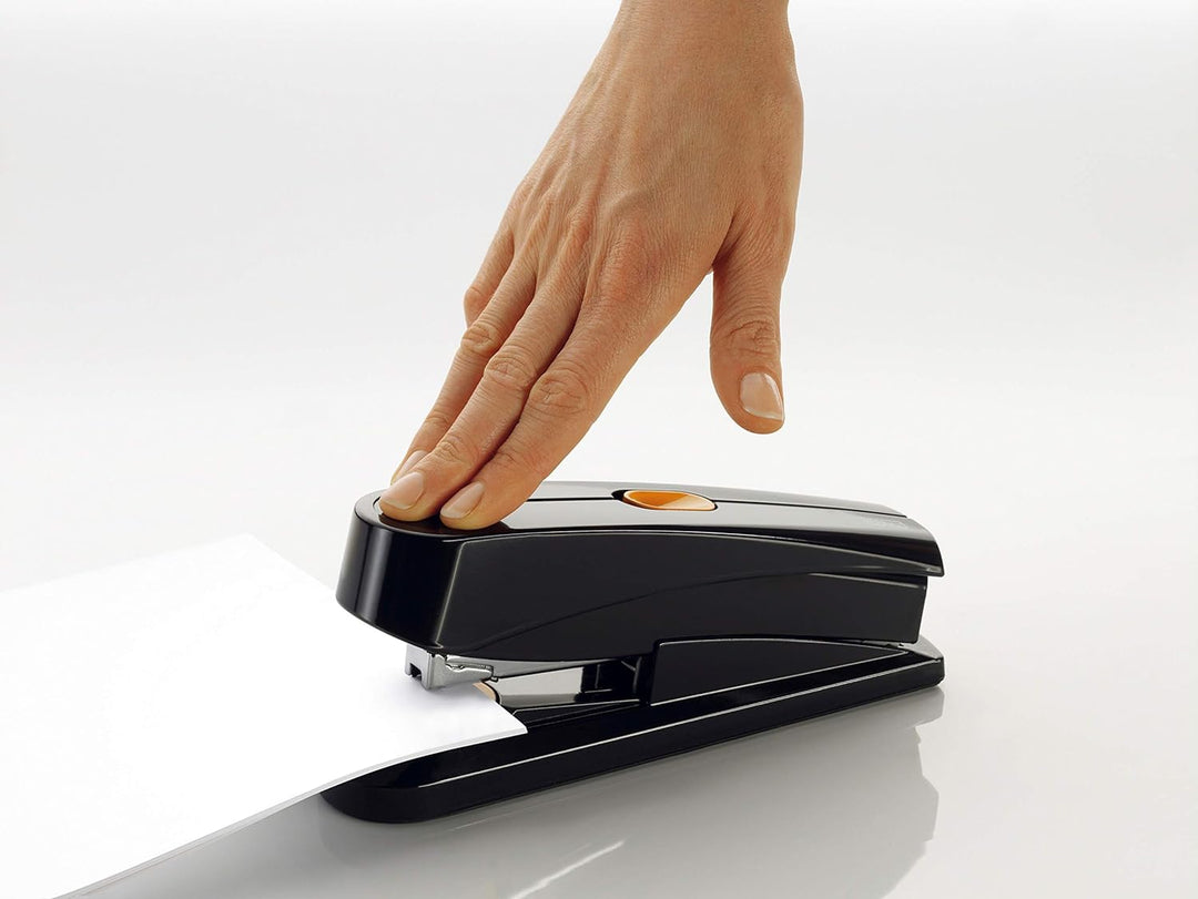 - Das innovative Heftgerät mit Power on Demand - Funktion: Durch den aufklappbaren Hebel des Tackers werden bis zu 50 Blatt Papier (80 g/m²) kinderleicht mit einer Kraftersparnis von über 70% geheftet