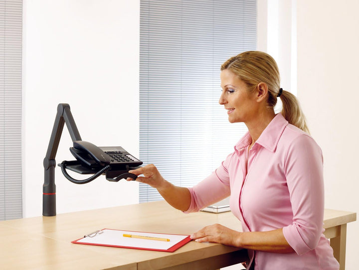 - Der Telefonschwenker sorgt für mehr Platz auf ihrem Schreibtisch. Die Universalzwinge zur einfachen und werkzeuglosen Befestigung ist für eine Tischplattenstärke von 18-74 mm geeignet