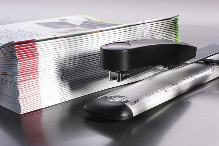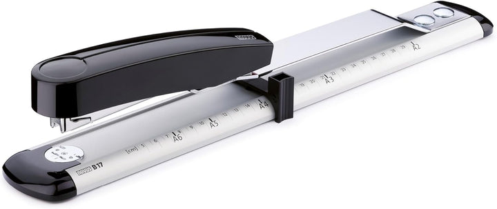- Der professionelle und elegante Langarmhefter ist ihr treuer Begleiter fürs Büro. Mit extra grosser Einlegetiefe (300 mm), die ein komfortables und sauberes Heften ihrer Broschüren, Prospekte und Booklets in den Formaten DIN A6 bis DIN A2 möglich