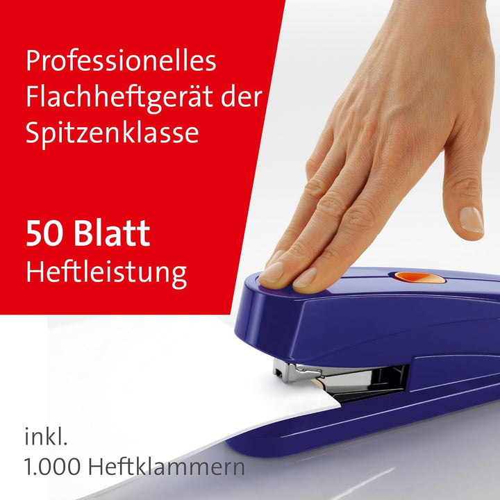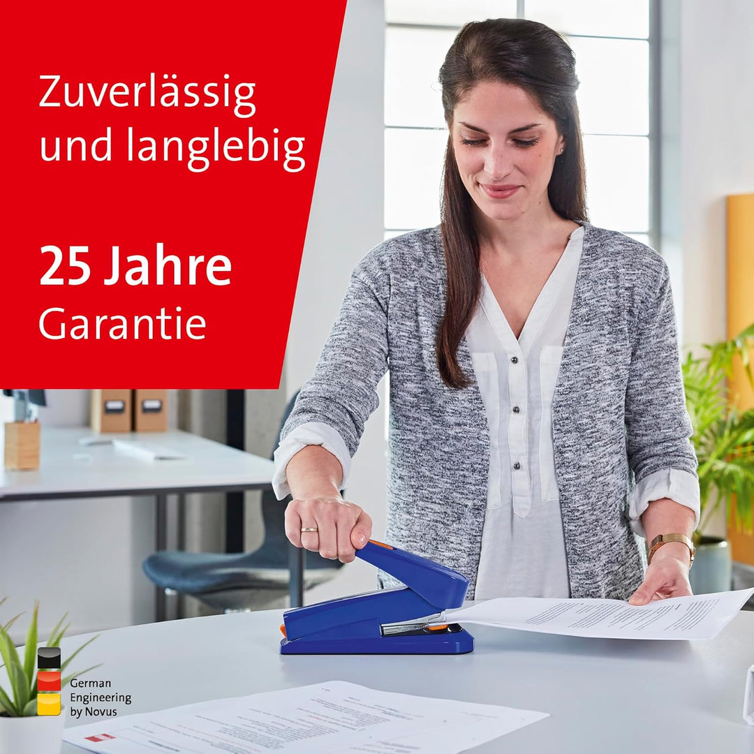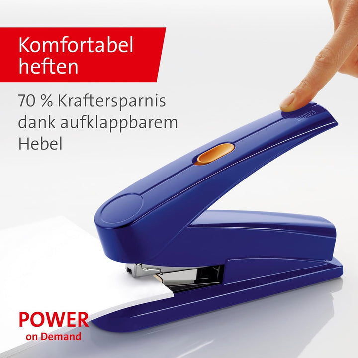 - Das innovative Heftgerät mit Power on Demand - Funktion: Durch den aufklappbaren Hebel des Tackers werden bis zu 50 Blatt Papier (80 g/m²) kinderleicht mit einer Kraftersparnis von über 70% geheftet