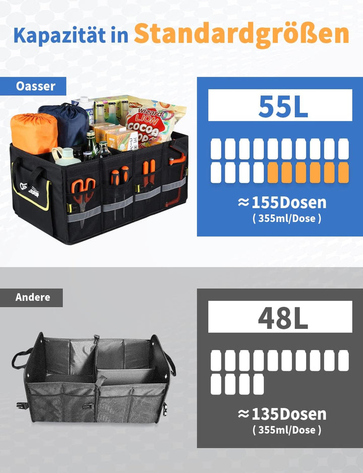 • Abnehmbare Deckel: Oasser Auto Kofferraum bietet eine vollständige Deckel, die Ihre Ladungen vor Staub oder Regenwasser schützen kann, Was noch wichtiger ist, Ihre Privatsphäre schützt