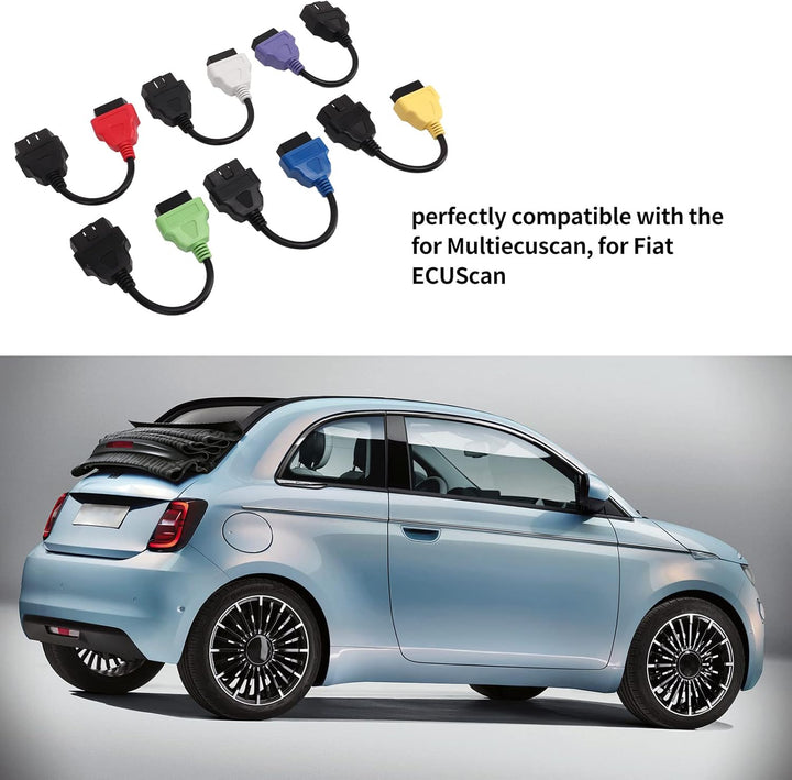 - Merkmal: Das Adapterkit enthält 6 OBD2 Diagnosekabel mit verschiedenen Steckerfarben, leicht zu identifizieren, erhältlich als MultiECUScan Softwareersatz für Fahrzeuge der Fiat Gruppe.