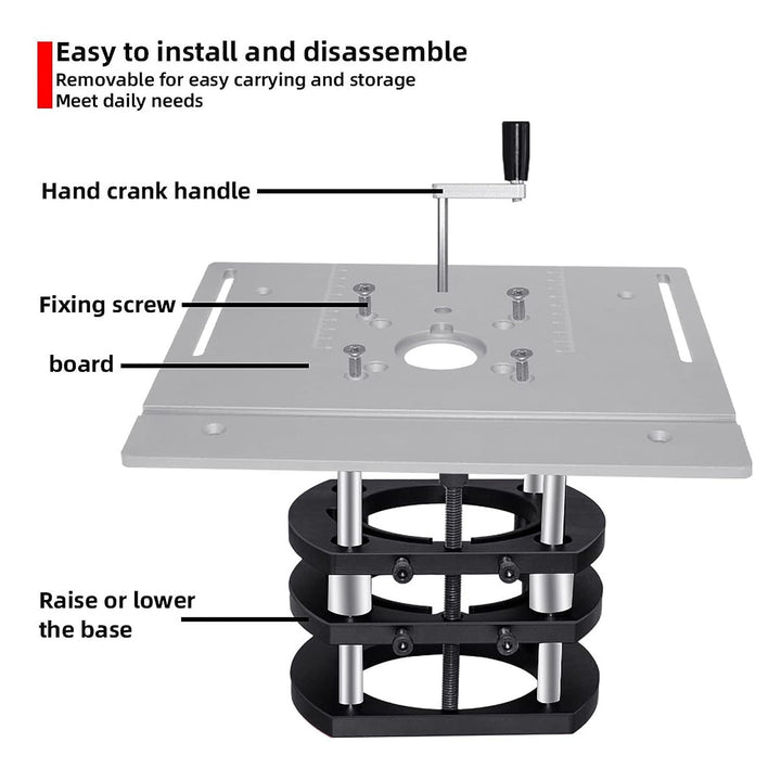 - EINFACH ZU BEDIENEN: Oberfräsenlift aus Metall mit Handgriff, Schraube, Inbusschlüssel, Schnellmontage, Handgriff zum Anheben