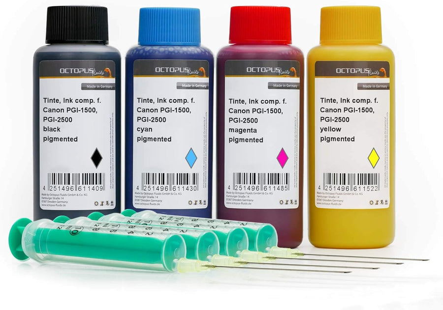 - 400 ml Octopus Nachfülltinte mit Zubehör für Canon PGI-1500 und PGI-2500 Druckerpatronen