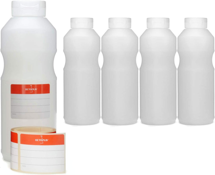 • Verwenden Sie diese stabilen 500ml Octopus Quetschflaschen bzw. Dosierflaschen oder Sossenflasche und Garnierflaschen zum Abfüllen und Verarbeiten unterschiedlicher Flüssigkeiten und Sossen in Haus und Küche.