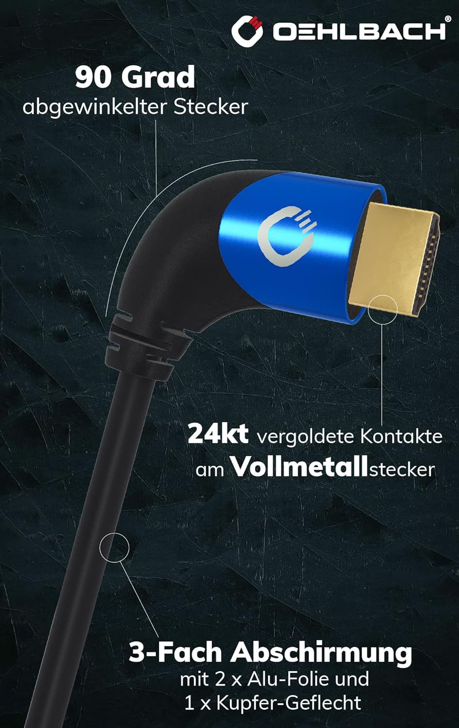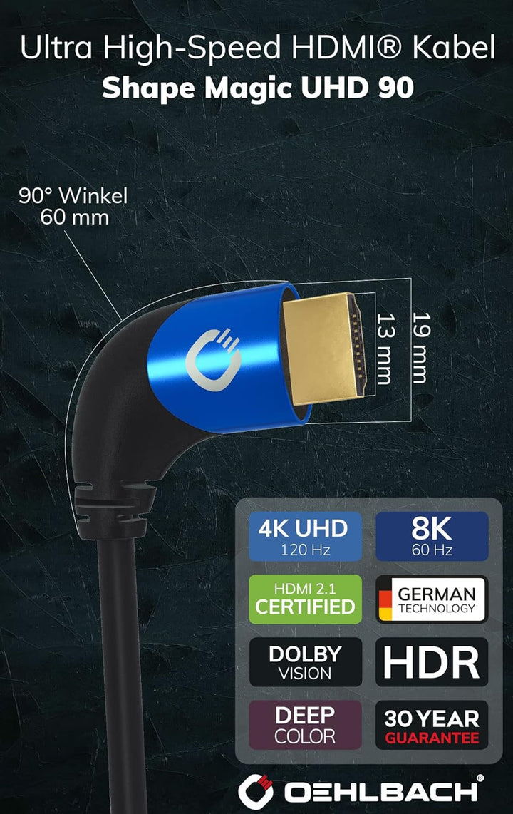 - 2.1 ZERTIFIZIERT: Hochwertig verarbeitetes und zertifiziertes 8K/4K HDMI Kabel mit 90 Grad Winkelstecker - Dolby Vision, HDR10+, VRR, eARC, ALLM, DTS MA, QMS, DSC uvm. abwärtskompatibel zu älteren HDMI Geräten