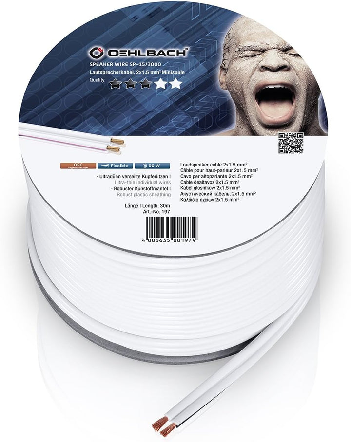 - Lieferumfang: Minispule Lautsprecherkabel, 2x1,5 mm²