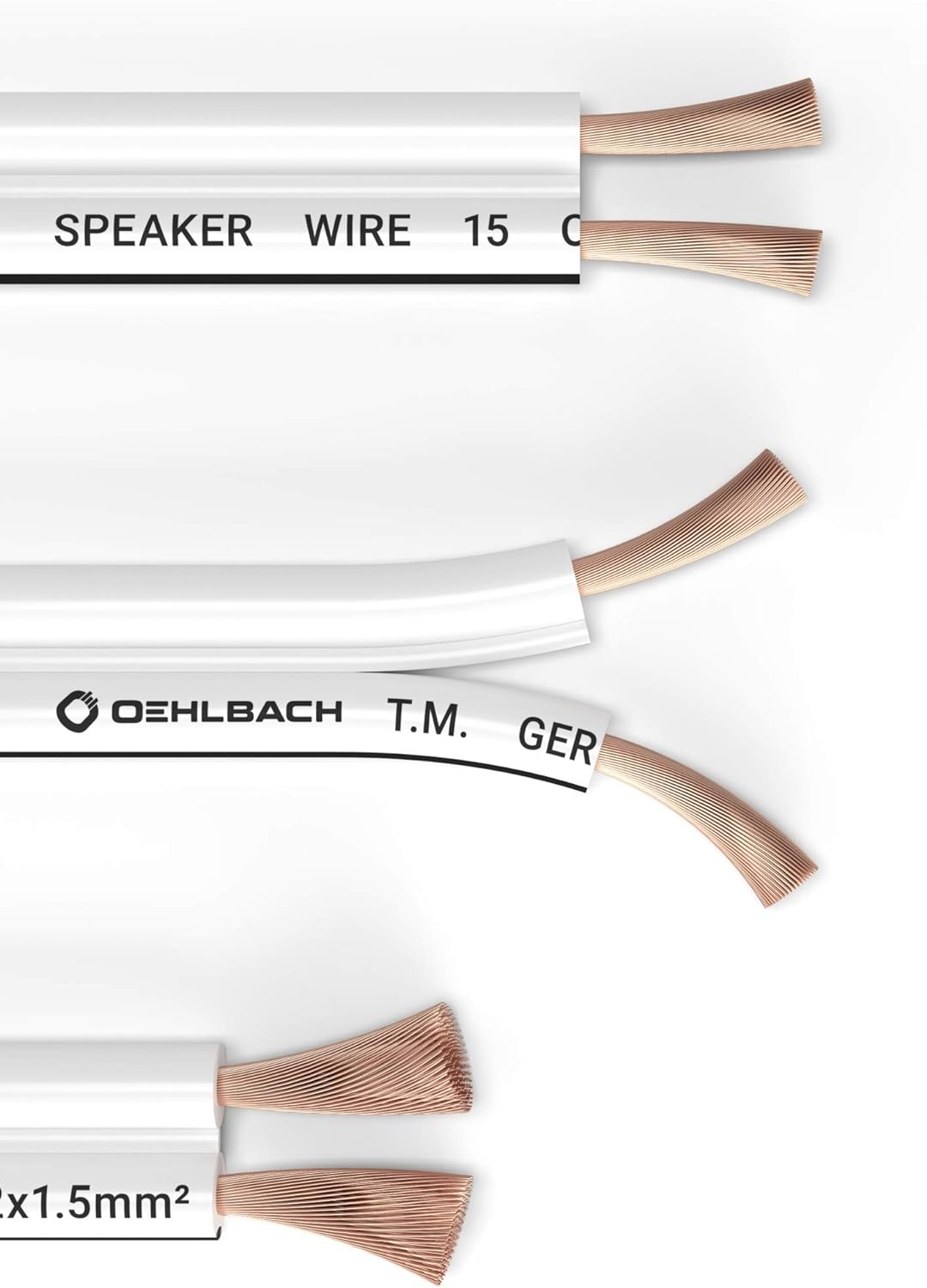 - Das Lautsprecherkabel besteht aus vielen ultradünnen Kupferlitzen und dieser spezielle Aufbau ermöglicht es, dass das Kabel besonders leitfähig und flexibel ist