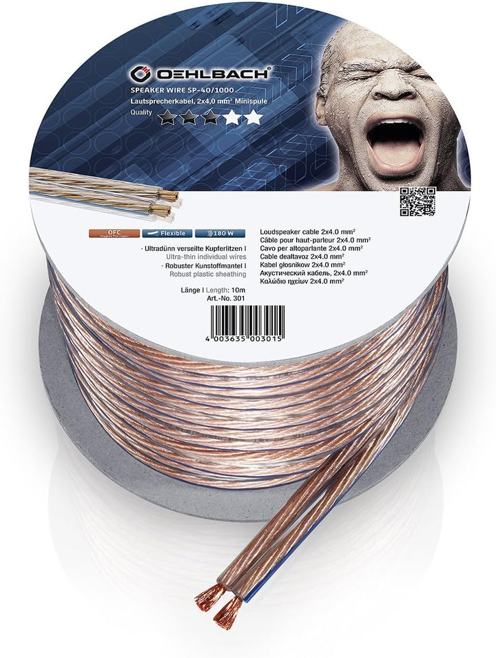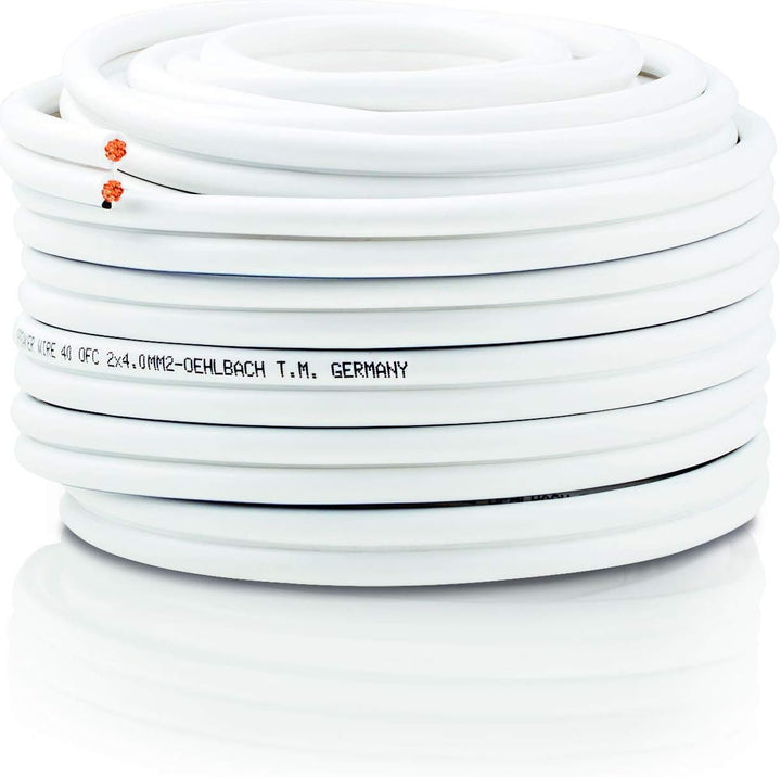 - Lieferumfang: Lautsprecherkabel auf Mini-Spule in der angegebenen Länge, 2x4,0 mm²