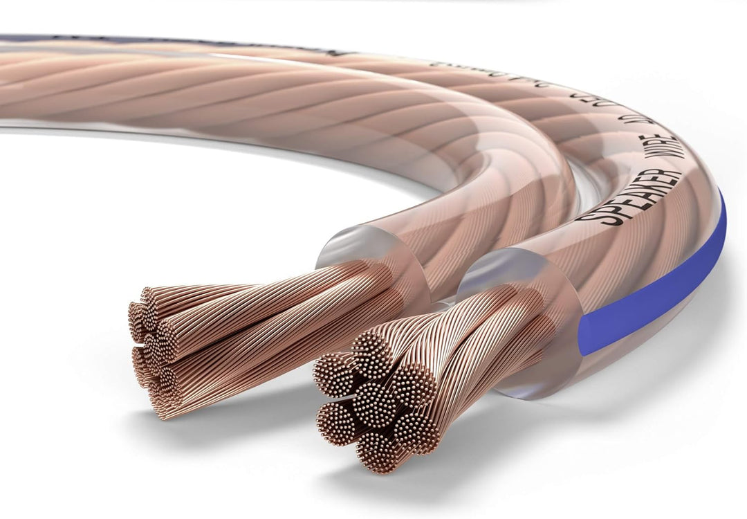- Das Lautsprecherkabel besteht aus vielen ultradünnen Kupferlitzen und dieser spezielle Aufbau ermöglicht es, dass das Kabel besonders leitfähig und flexibel ist.