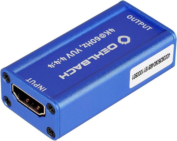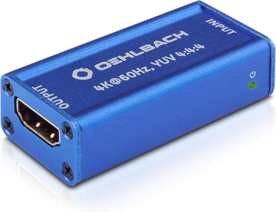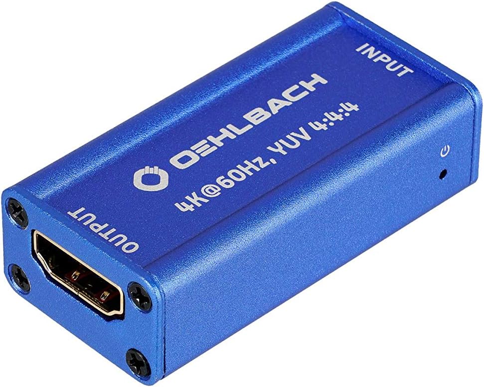 - OEHLBACH - UltraHD HDMI Repeater: Mit diesem Verstärker lässt sich ein HDMI-Signal optimal verstärken/verlängern und dies über maximal 25 Meter und einer Auflösung von 4K mit vollen 60Hz (hochwertiges HDMI-Kabel und passende Ausgabespannung der