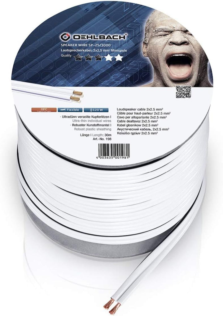 - Lieferumfang: Mini-Spule Lautsprecherkabel, 2x2,5 mm².