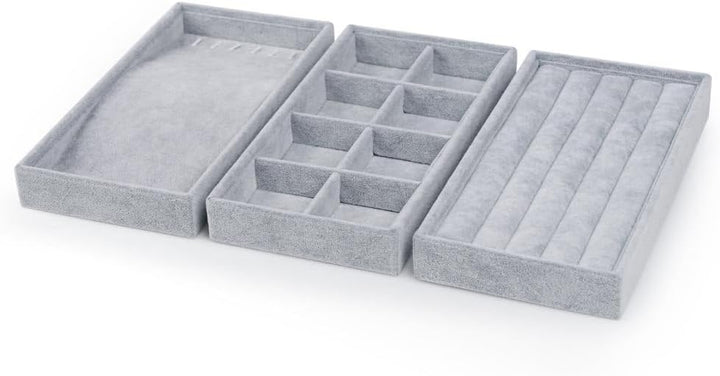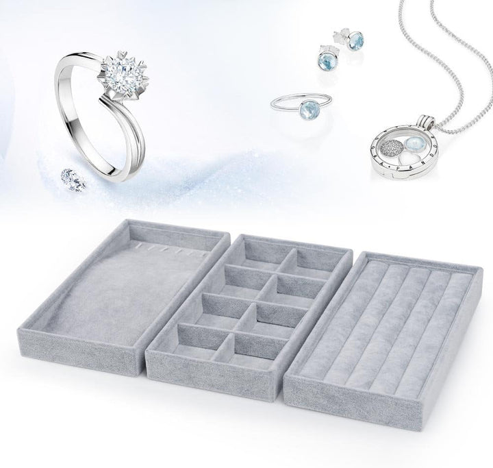 - ★ Handgefertigt und stapelbar: Bei der Handarbeit achten wir darauf, dass jedes Fach ausgerichtet ist und das Samtmaterial gestreckt ist, damit keine Falten entstehen. Unsere Schmuckschalen sind so konzipiert, dass sie übereinander gelegt werden