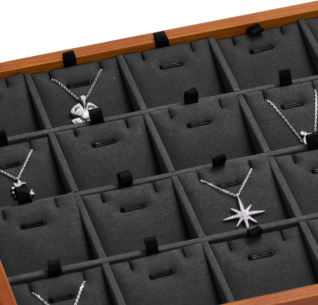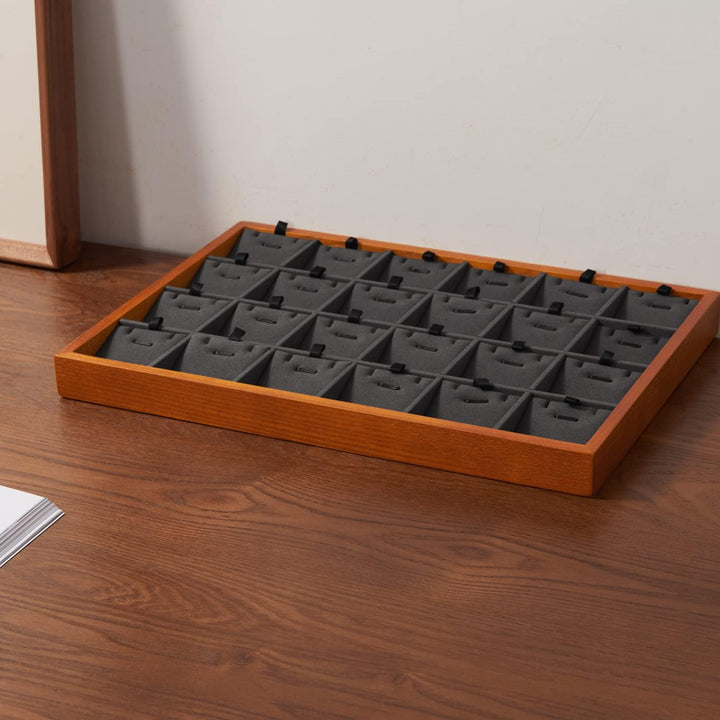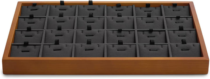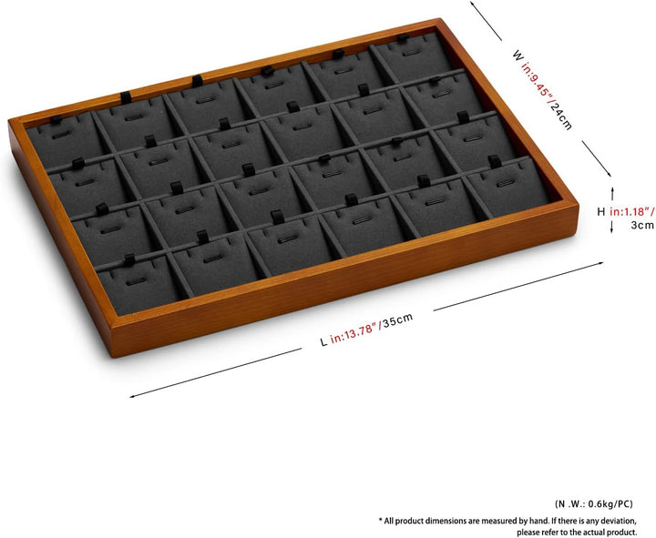 - ★Massivholz 24 Gitter Schmucktabletts,Masse: 35 x 24 x 3 cm (L x B x H),jedes Fach 6 x 5 cm.Jedes Schmuckpad kann entfernt werden. 1 Stück, Schmuck nicht enthalten.