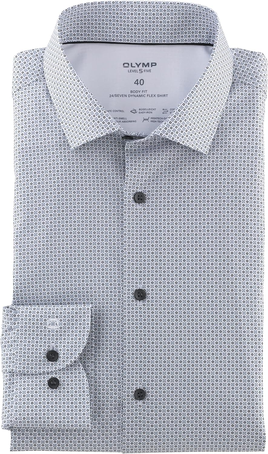 PRODUKTBESCHREIBUNGEN OLYMP Level Five 24/Seven body fit 204924 body fit, Businesshemd Langarm,Rotationsdruck,Modern Kent UNSERE HALTUNG. UNSER STATEMENT. Als global agierendes Unternehmen trägt OLYMP global Verantwortung – gegenüber Mitarbeitern und Kunden, gegenüber Lieferanten und Partnern in den Herstellungsländern, gegenüber der Umwelt und dem Klima. Und nicht zuletzt gegenüber der Gesellschaft. Corporate Responsibility ist bei OLYMP mehr als nur ein Schlagwort. Sie ist eine Haltung, die jeden Tag gelebt wird, gleichzeitig ist sie ein Leitprinzip, das fest in der Unternehmensstrategie verwurzelt ist. Das Nachhaltigkeitsprogramm von OLYMP beruht auf drei starken Säulen und hat dabei die gesamte Geschäftstätigkeit im Blick: vom zunehmenden Einsatz nachhaltiger Rohstoffe über die Umsetzung von Sozial- und Umweltstandards entlang der Lieferkette bis hin zum klimaneutralen Firmensitz. Dafür engagiert sich der Produktspezialist aktiv in zahlreichen Initiativen, Verbänden und Organisationen, die sich für eine nachhaltigere Textilwirtschaft einsetzen. Dieses Produkt zeichnet sich durch folgende Merkmale aus: * Passform: body fit * Muster: Rotationsdruck auf Uni * Kragenform: Modern Kent * Jersey-Hemd Atmungsaktiv Schnelltrocknend besonders dehnbar Bügelleicht anti-smell * Materialzusammensetzung: 64%Baumwolle/27%Polyester/9%Elasthan Pflege: bei 40 Grad waschen, nicht Wäschetrockner geeignet, nicht heiss bügeln, nicht bleichen, keine chemische Reinigung möglich
