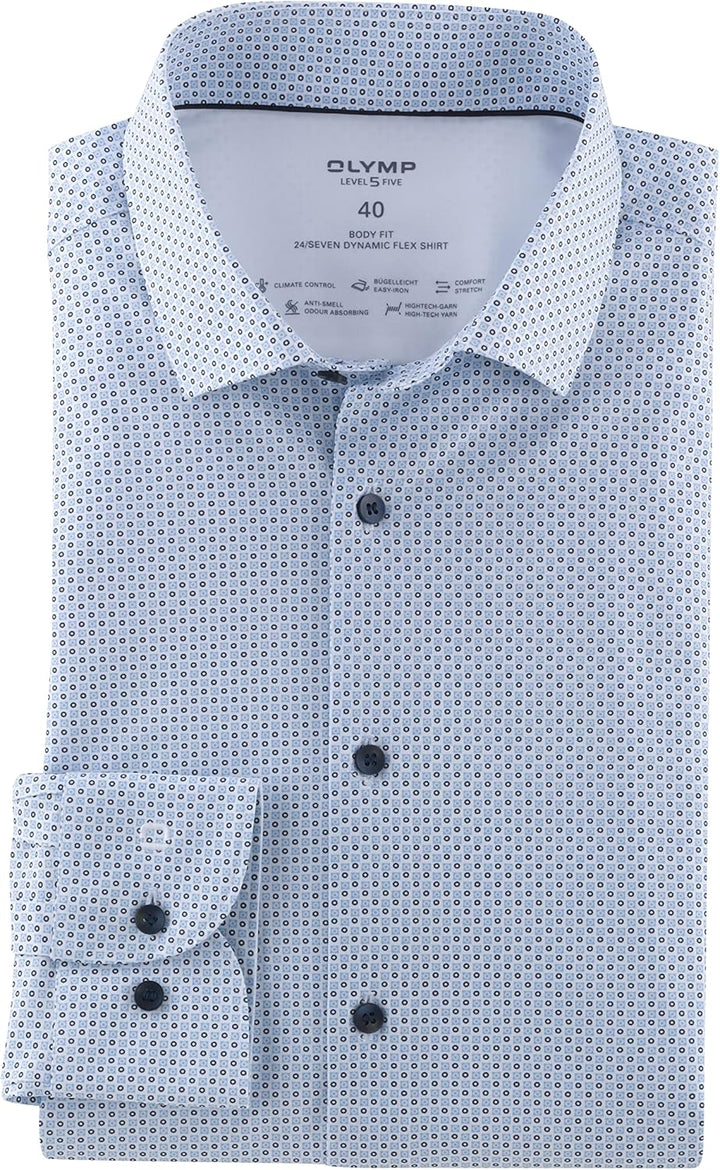 PRODUKTBESCHREIBUNGEN OLYMP Level Five 24/Seven body fit 204924 body fit, Businesshemd Langarm,Rotationsdruck,Modern Kent UNSERE HALTUNG. UNSER STATEMENT. Als global agierendes Unternehmen trägt OLYMP global Verantwortung – gegenüber Mitarbeitern und Kunden, gegenüber Lieferanten und Partnern in den Herstellungsländern, gegenüber der Umwelt und dem Klima. Und nicht zuletzt gegenüber der Gesellschaft. Corporate Responsibility ist bei OLYMP mehr als nur ein Schlagwort. Sie ist eine Haltung, die jeden Tag gelebt wird, gleichzeitig ist sie ein Leitprinzip, das fest in der Unternehmensstrategie verwurzelt ist. Das Nachhaltigkeitsprogramm von OLYMP beruht auf drei starken Säulen und hat dabei die gesamte Geschäftstätigkeit im Blick: vom zunehmenden Einsatz nachhaltiger Rohstoffe über die Umsetzung von Sozial- und Umweltstandards entlang der Lieferkette bis hin zum klimaneutralen Firmensitz. Dafür engagiert sich der Produktspezialist aktiv in zahlreichen Initiativen, Verbänden und Organisationen, die sich für eine nachhaltigere Textilwirtschaft einsetzen. Dieses Produkt zeichnet sich durch folgende Merkmale aus: * Passform: body fit * Muster: Rotationsdruck auf Uni * Kragenform: Modern Kent * Jersey-Hemd Atmungsaktiv Schnelltrocknend besonders dehnbar Bügelleicht anti-smell * Materialzusammensetzung: 64%Baumwolle/27%Polyester/9%Elasthan Pflege: Handwäsche, nicht Wäschetrockner geeignet, nicht heiss bügeln, nicht bleichen, schonend trocknen trocknene Reinigung Mehr