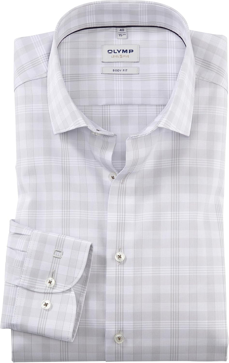 OLYMP Herren Businesshemd Langarm Level Five,Kariert,Body fit,Modern Kent 46 Hellgrau 61, 46 Hellgra