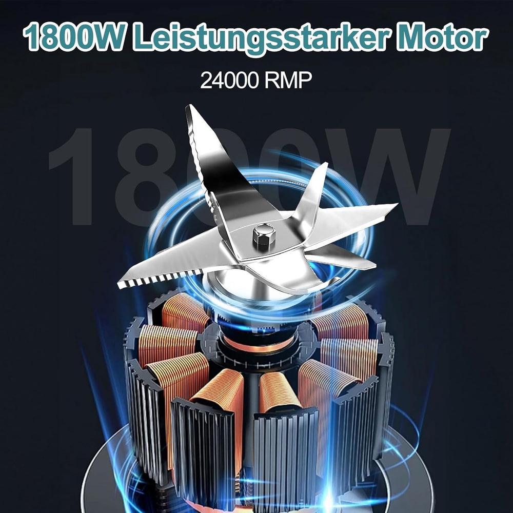 - 🍹【1,8L Mixbehälter & 300 ml To-Go-Becher】 Der BPA-freie 1,8L Mixbehälter kann nahrhaften Saft für die ganze Familie auf einmal zubereiten. Die köstlichen Geschmackserlebnisse, die Sie kreieren, sind es wert, geteilt zu werden. 300 ml