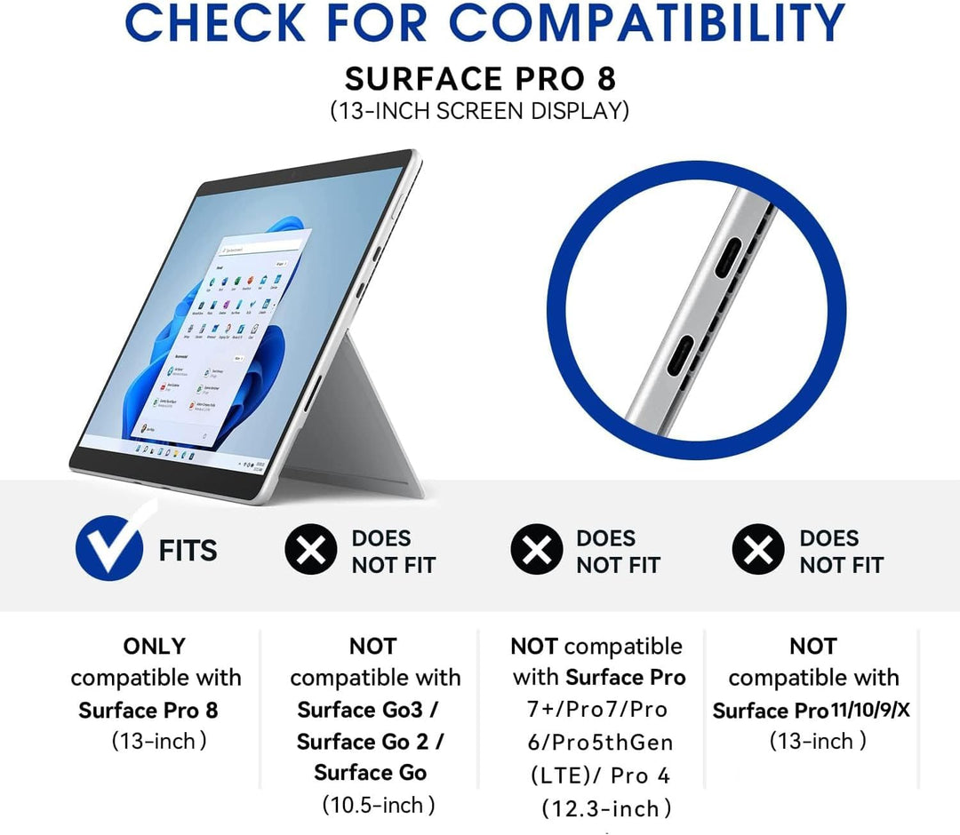 - Entwickelt für das neue Microsoft Surface Pro 8 2021. Funktioniert mit der Tastatur des Surface Pro-Typs (Tastatur nicht im Lieferumfang enthalten).