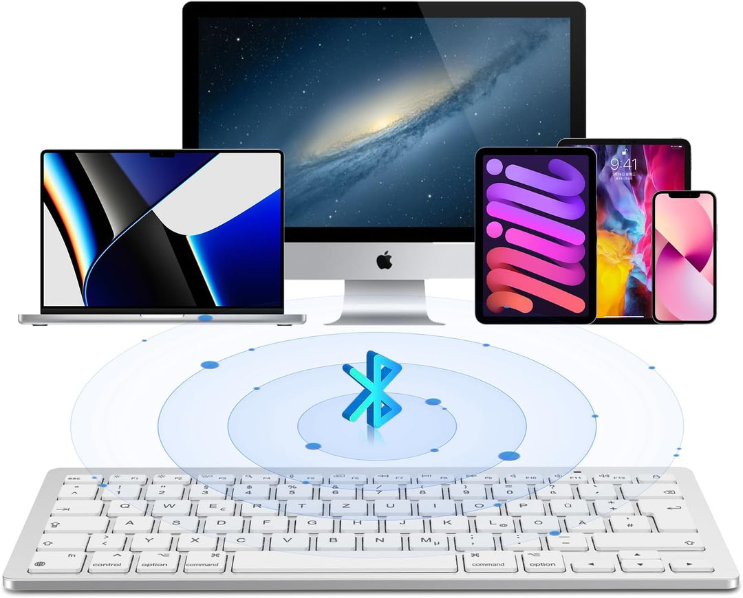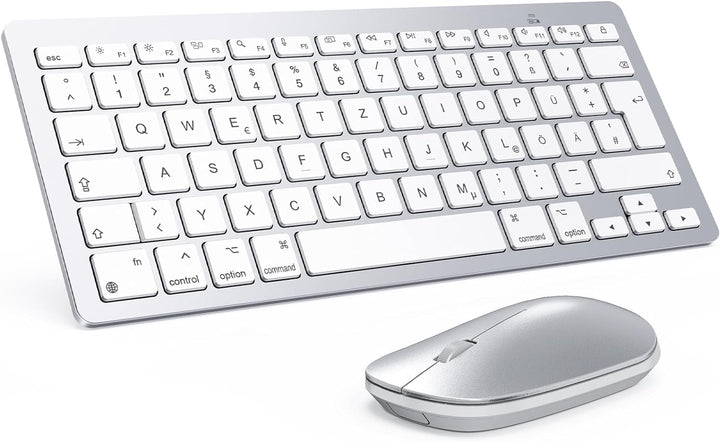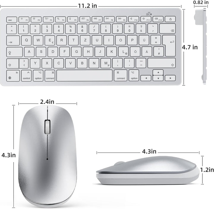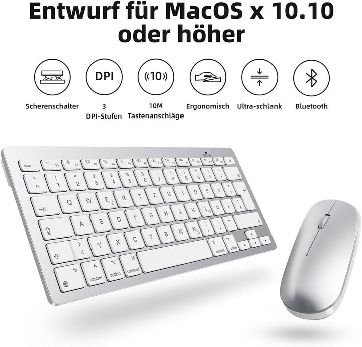 - 【Bluetooth-Tastatur und Maus Set für Mac Layout】Diese Bluetooth-Tastatur funktioniert am besten mit Mac OS X 10.10 und höheren Versionen. Als Bluetooth-Tastatur, QWERTY-Layout, benutzerfreundlich, Silent-Click-Maus, kann es nahtlos für