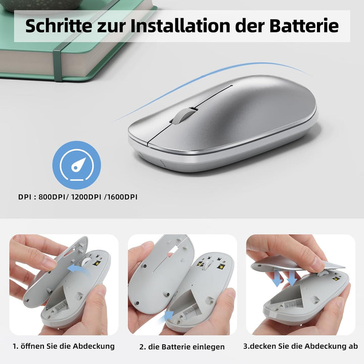 - 【Silent Typing Bluetooth Tastatur and Maus】Diese kabellose Tastatur verfügt über einen Scherenschalter-Mechanismus, der ein komfortables Feedback beim Tippen bietet, leises Tippen und effizientes Arbeiten ermöglicht, die design-ergonomische Maus