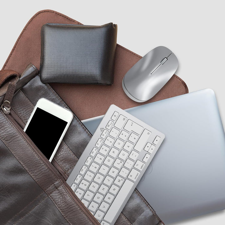 - 【Kompakte kabellose Tastatur und Maus】Dieses Mac Bluetooth-Tastatur- und Maus-Set optimiert Ihre Bewegung und trägt zu Effizienz und Produktivität bei. Mit den 12 Schnelltasten können Sie schneller arbeiten, sie sind leicht zu transportieren, die