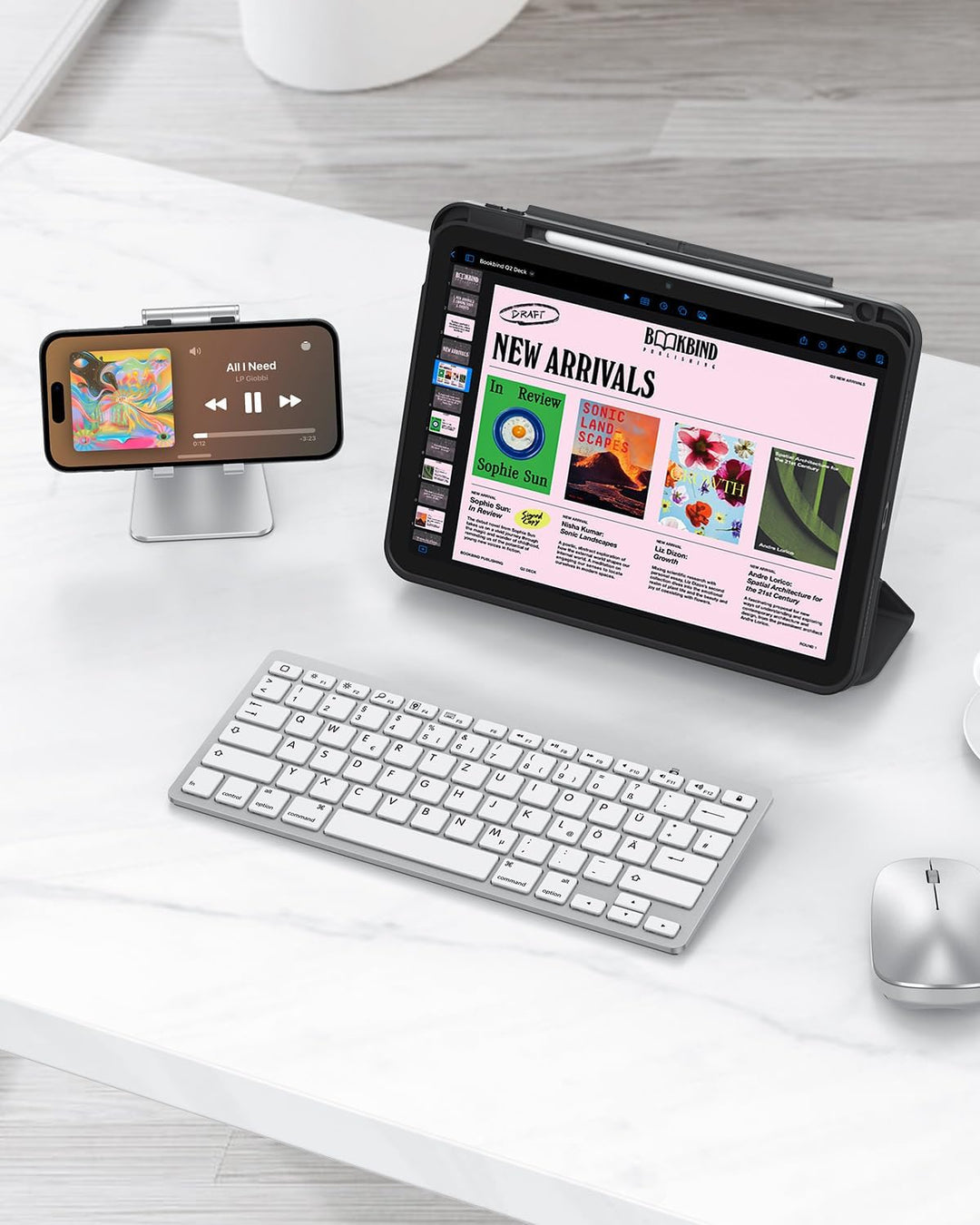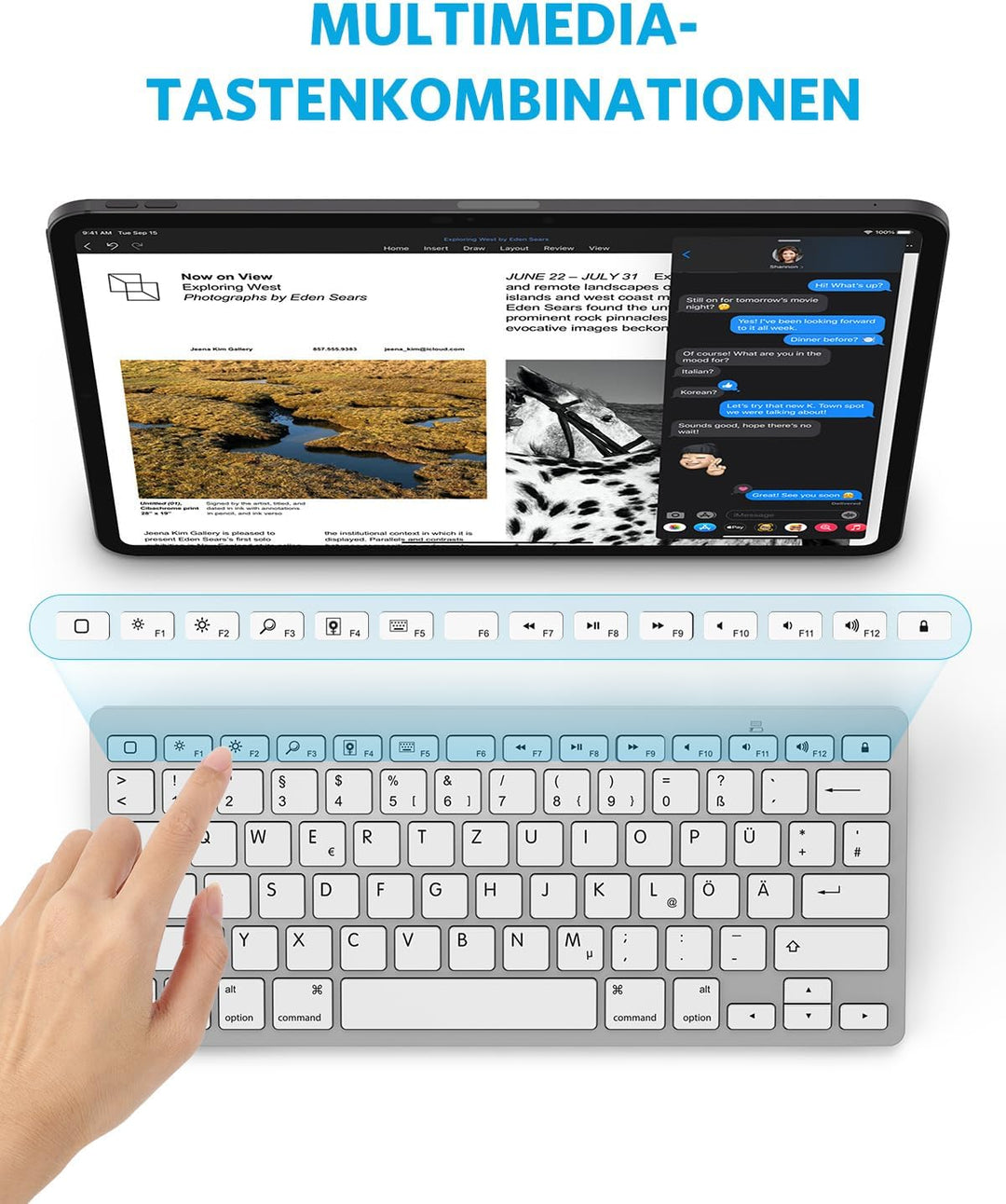 - 2.Mehr kompatibel: Diese Bluetooth Tastatur iPad ist mit neuem iPad Pro 13/iPad Pro11 /iPad Air 6/ iPad 10,9 Zoll (10. Generation), iPad 10,2 Zoll (9./8./7. Generation), iPad Air/ iPad mini/iPad Pro 12.9/11 und alles iPhone Handy.