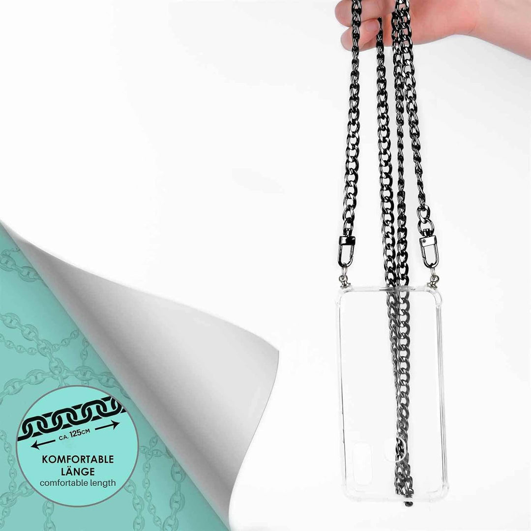 - SICHERES UMHÄNGEBAND: Robuste Anhänger halten die Smartphonekette und die Handyhandtasche sicher zusammen. Die Halte-Schlaufe hält auch bei starker Belastung dein Handy sicher an der Metallkette