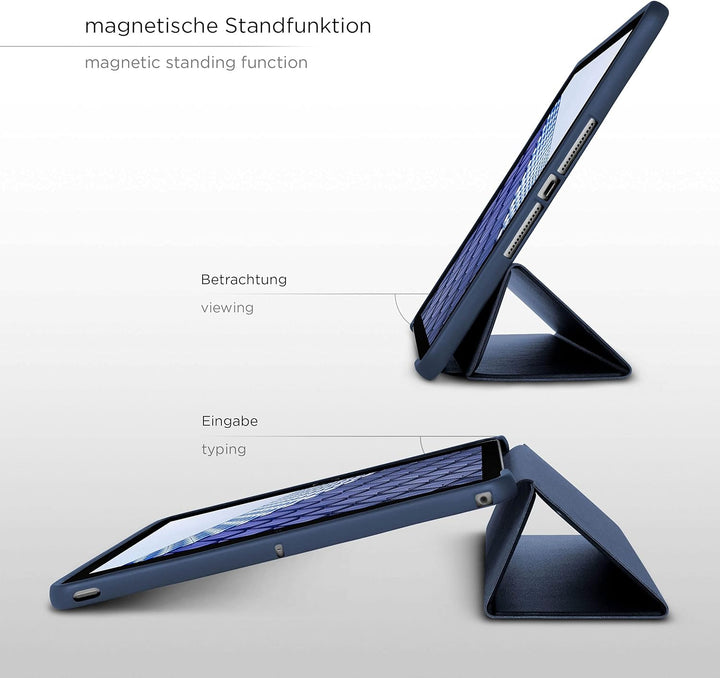 - STANDFUNKTION: Die magnetische Aufstellfunktion mit 2 unterschiedlichen Betrachtungswinkeln lässt sich optimal einstellen – ideal zum Schreiben und Tippen, oder um sich Videos und Fotos anzuschauen