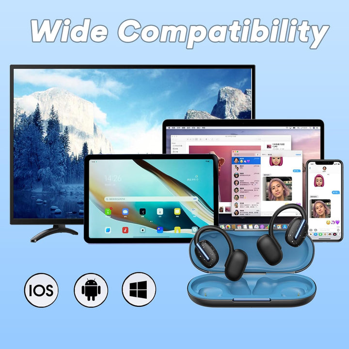 - 🎧【Open-Ear-Design】 Knochenschall Kopfhörer sind mit Ohrbügeln ausgestattet, die lange Zeit bequem an den Ohren getragen werden können. Das Open-Ear-Design der Air Bone Conduction Headphones hilft Ihnen, Ihre Umgebung wahrzunehmen. Egal, ob Sie
