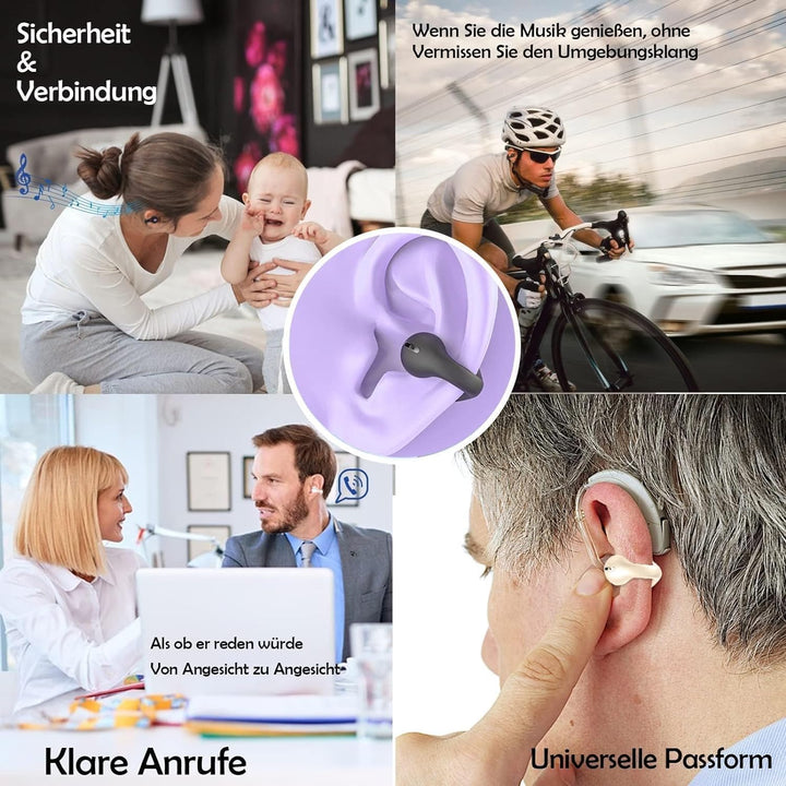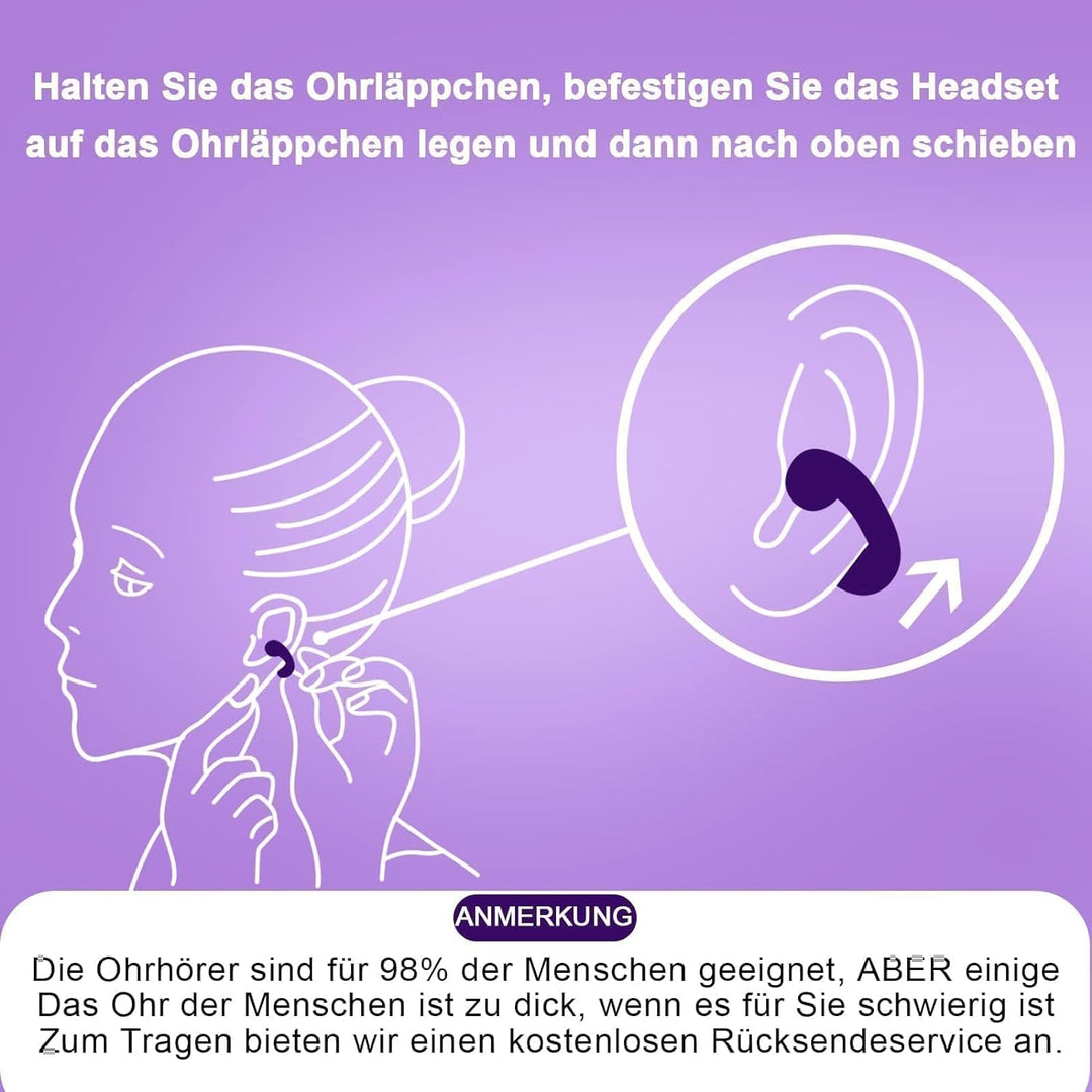 • 📞【HiFi Stereo Sound & Klare Anrufe】 Die Wireless Ear Clip Bone Conduction Headphones sind mit HiFi Stereo Sound und dynamischer Graphit-Verbundfilmspule ausgestattet, so dass der Klang der Ohrhörer weich und natürlich, hell und transparent ist,