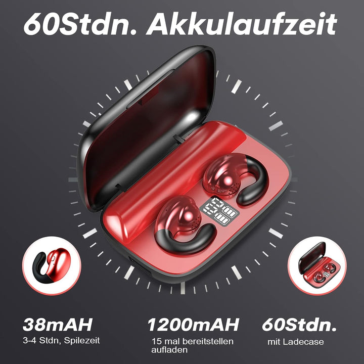 - 📞【HiFi Stereo Sound & Klare Anrufe】 Die Gym Kopfhörer sind mit HiFi Stereo Sound und dynamischer Graphit-Verbundfilmspule ausgestattet, so dass der Klang der Open Ear Ohrhörer weich und natürlich, hell und transparent ist, die Musik reiner ist,