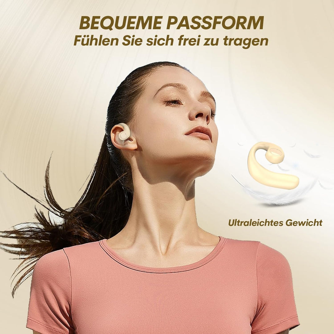 - 🪶【Komfortable und leichte Kopfhörer】 Open Ear kabellos Bluetooth Ohrhörer sind sehr leicht, und Sie werden ihre Existenz vergessen, nachdem Sie sie lange getragen haben. Sport-Ohrhörer sind kabellos und hemmungslos, wodurch sie mit