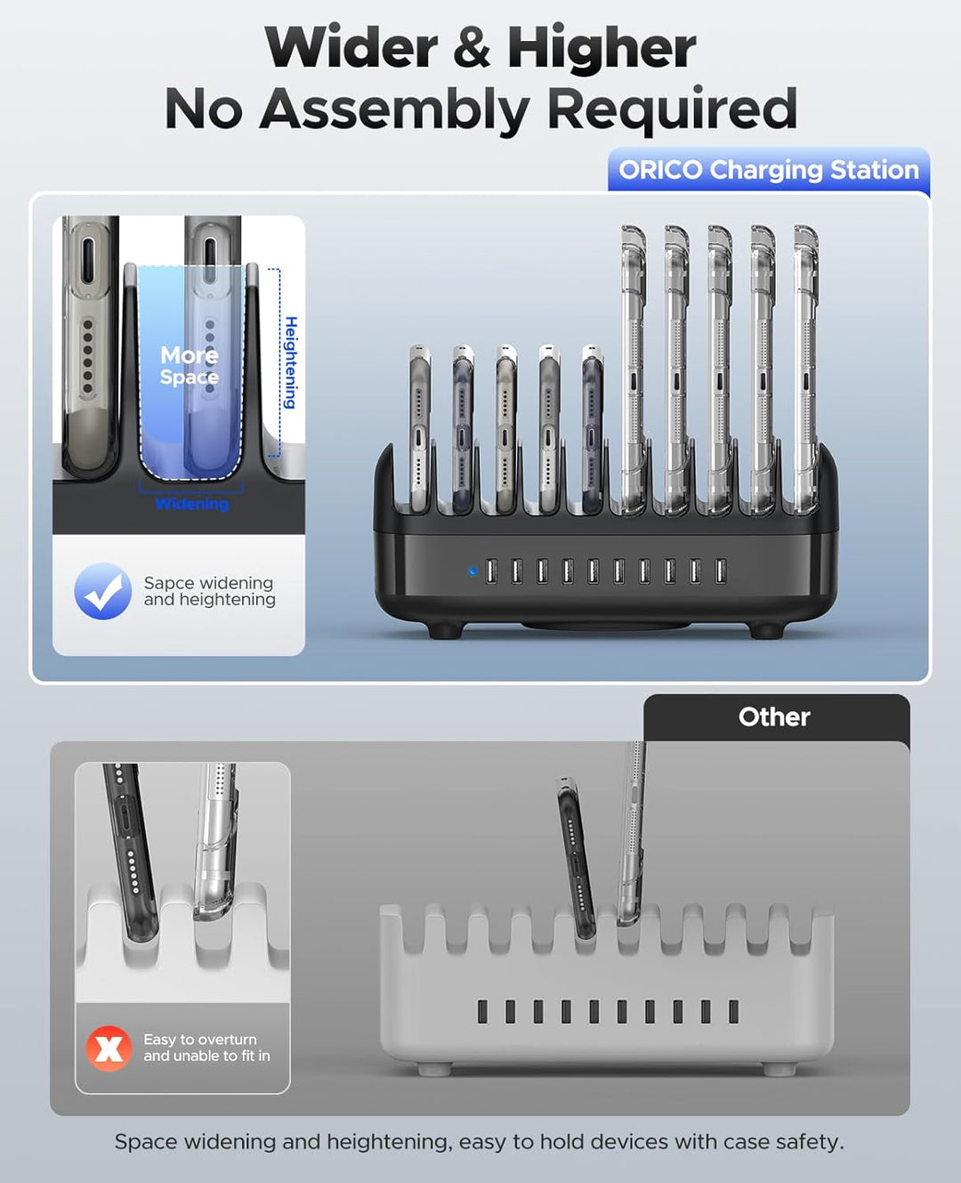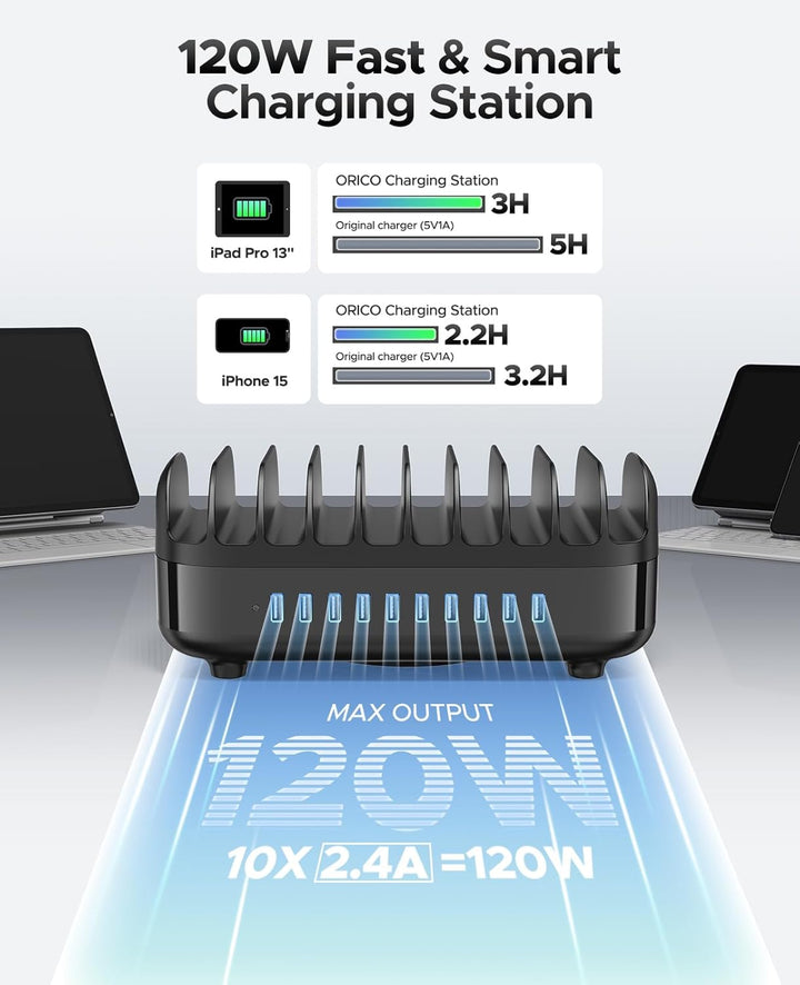 - 【NEUES UPGRADE 120W USB LADESTATION FÜR MEHRERE GERÄTE】ORICO 120W Ladestation nicht wie andere Ladestationen mit kurzen, instabilen und zerbrechlichen Kunststoff/Holz Trennwände.Neu aktualisierte USB Ladestation Partitionen sind höher und