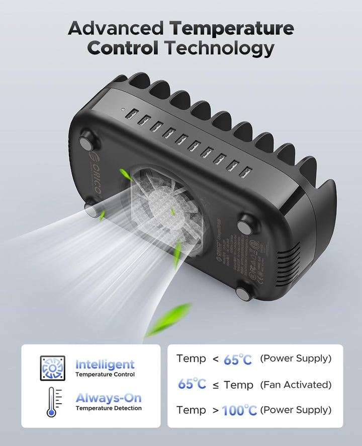 - 【SICHERER UND SCHNELLER INTELLIGENTER LADESCHUTZ】ORICO 10 Ports Smart USB Ladestation Eingebauter Überspannungsschutz gegen Überladung, Überspannung und Überhitzung, Kurzschlussschutz, Überlastungsschutz, Die Schnellladestation für 10