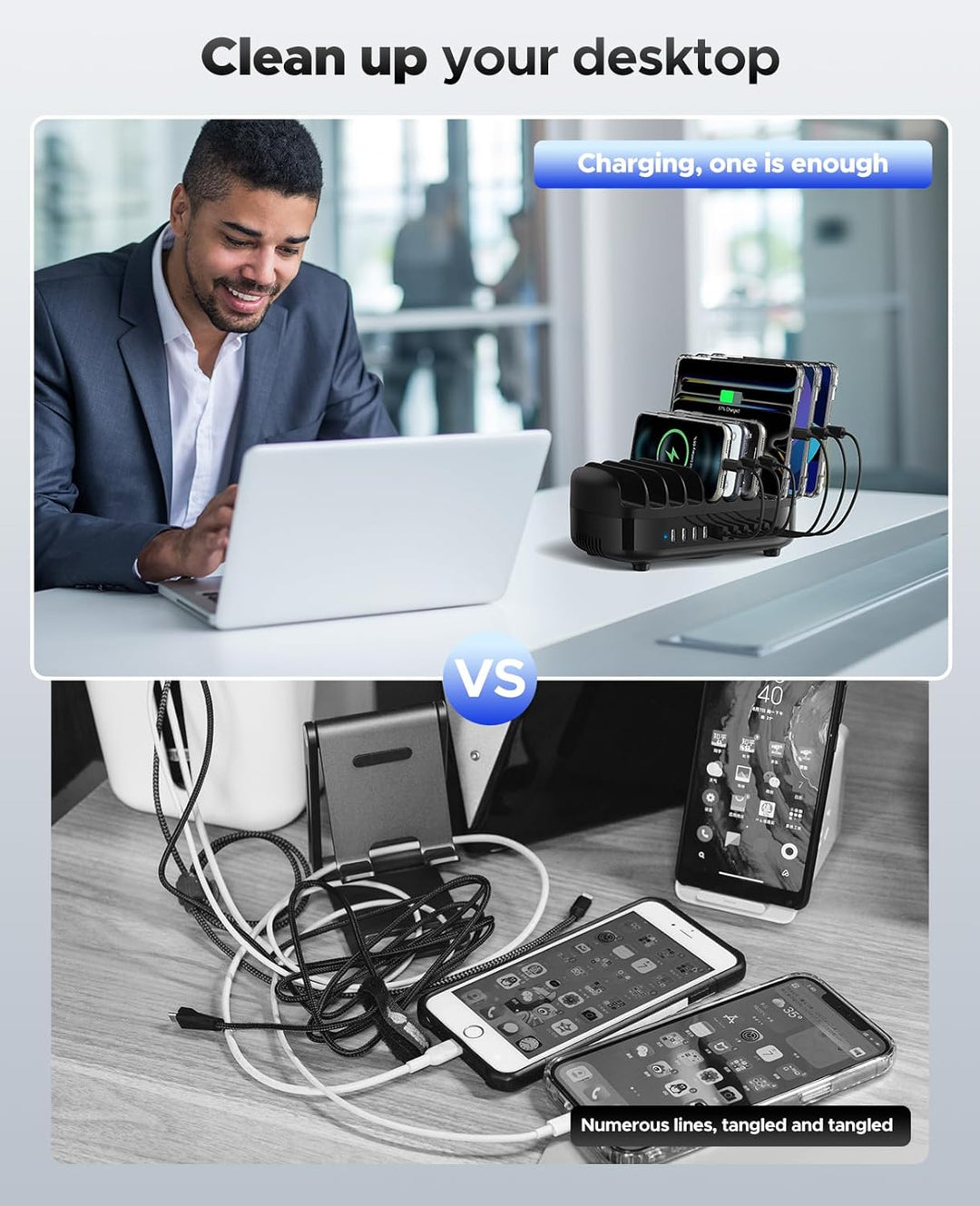 - 【UNIVERSELLE USB LADESTATION】 Diese Ladestation für mehrere Geräte ist mit allen Arten von USB-Ladekabeln kompatibel, wie iPhone, Samsung Galaxy, iPad, Android-Smartphones, Tablets, Powerbanks, Kameras, Lautsprecher, Headsets usw. Diese