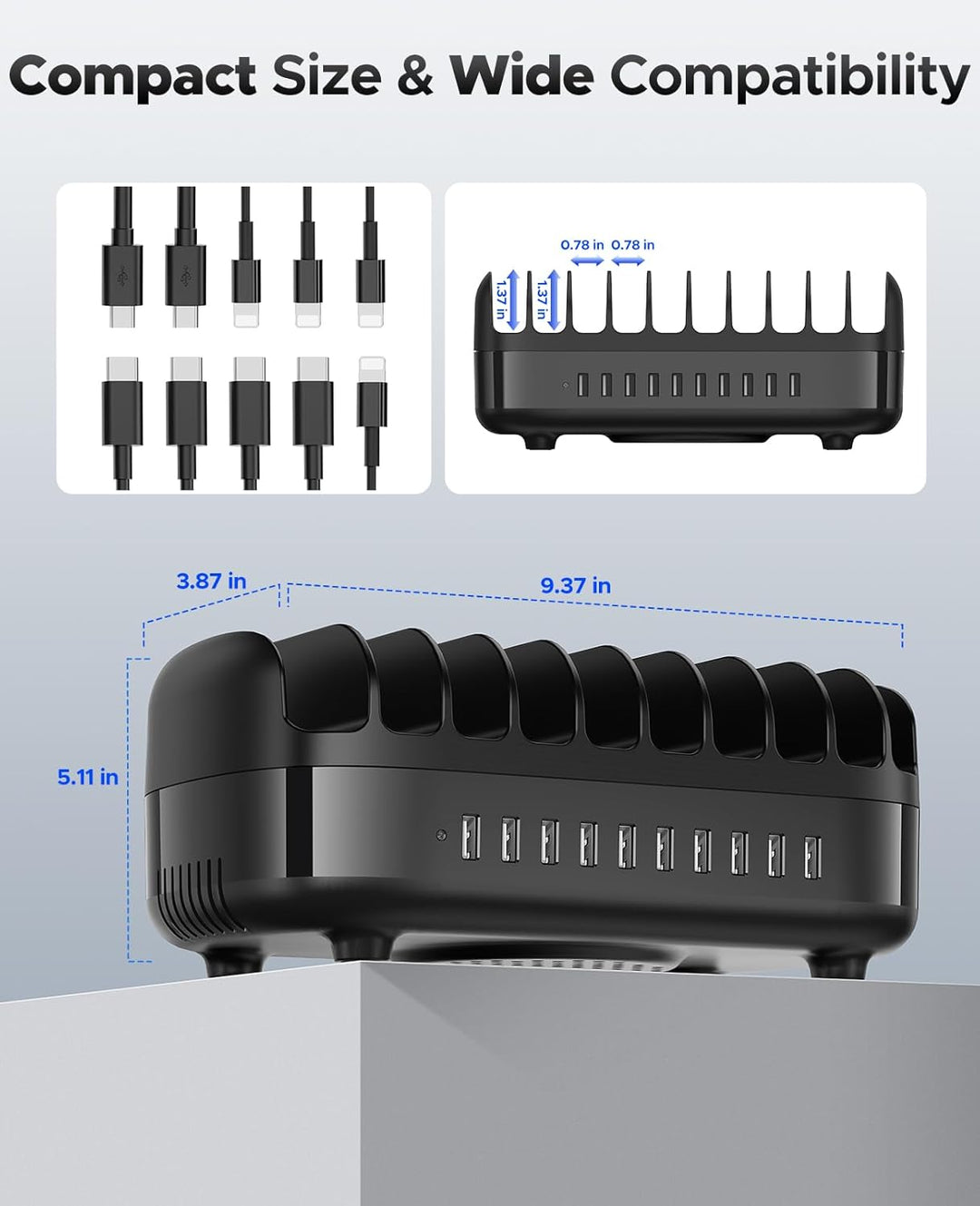 - 【SMART USB LADESTATION MIT WÄRMEABLEITUNG 】 Die 120W Ladestation ist mit einem intelligenten Lüfter und Lüftungsöffnungen an den Seiten und der Rückseite ausgestattet, um sicherzustellen, dass die Ladestation in einer sicheren und kühlen