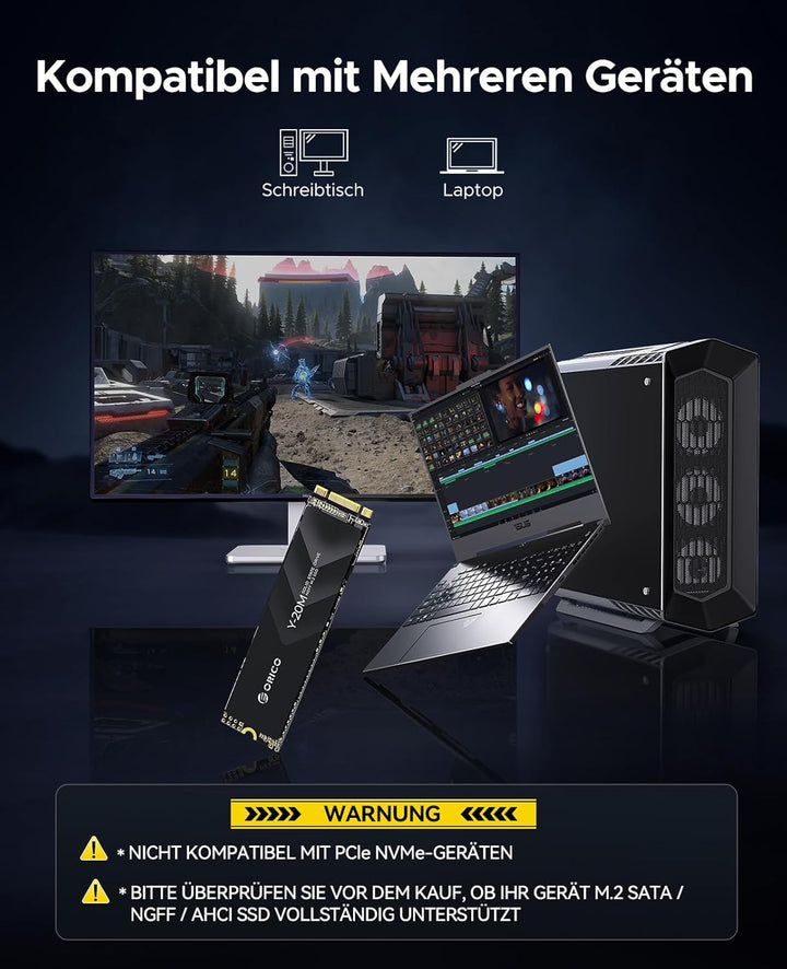 - Breite Kompatibilität: Die ORICO M.2 SATA SSD 2280 ist mit verschiedenen Laptops und Desktops kompatibel, die über eine M.2 SATA B+M Key-Schnittstelle verfügen, und ist somit ideal für die Aufrüstung Ihres Systems geeignet